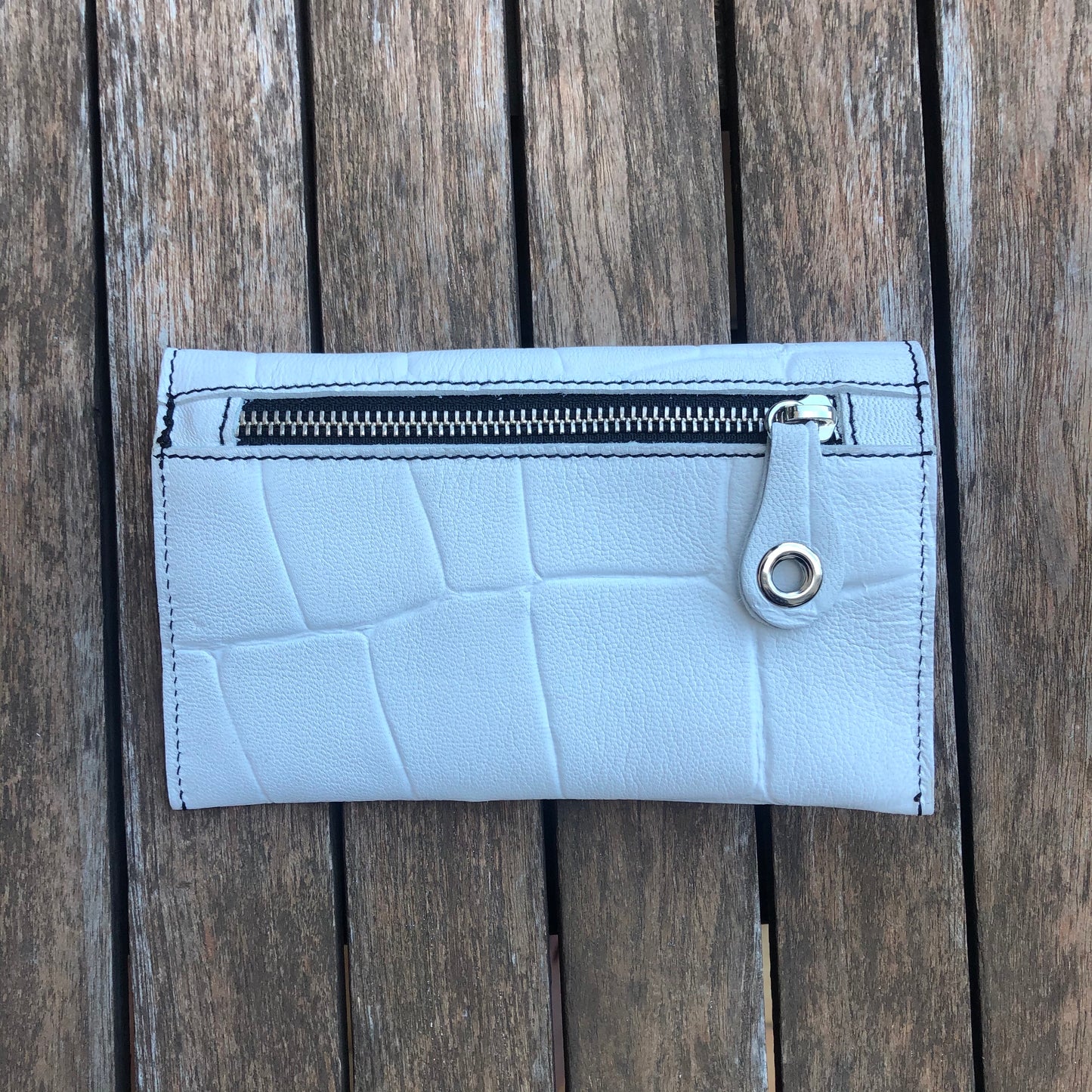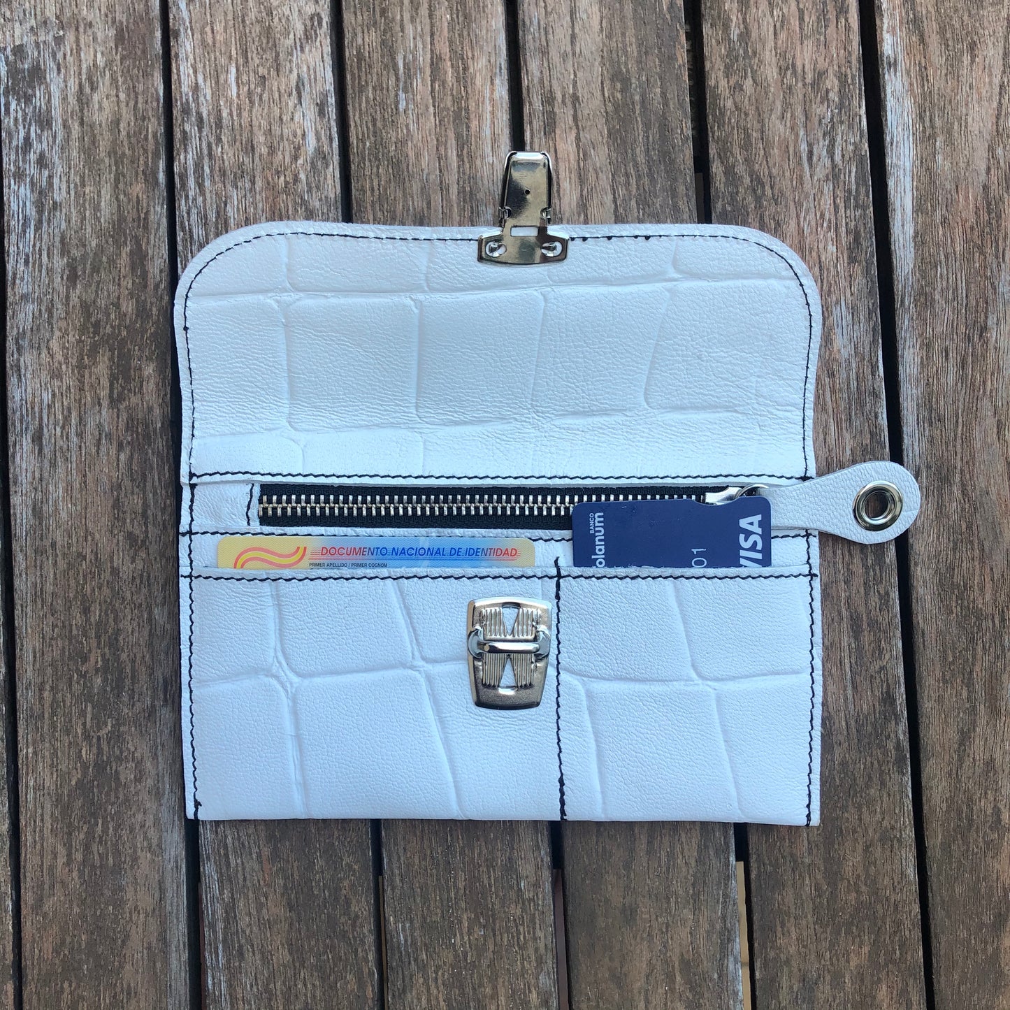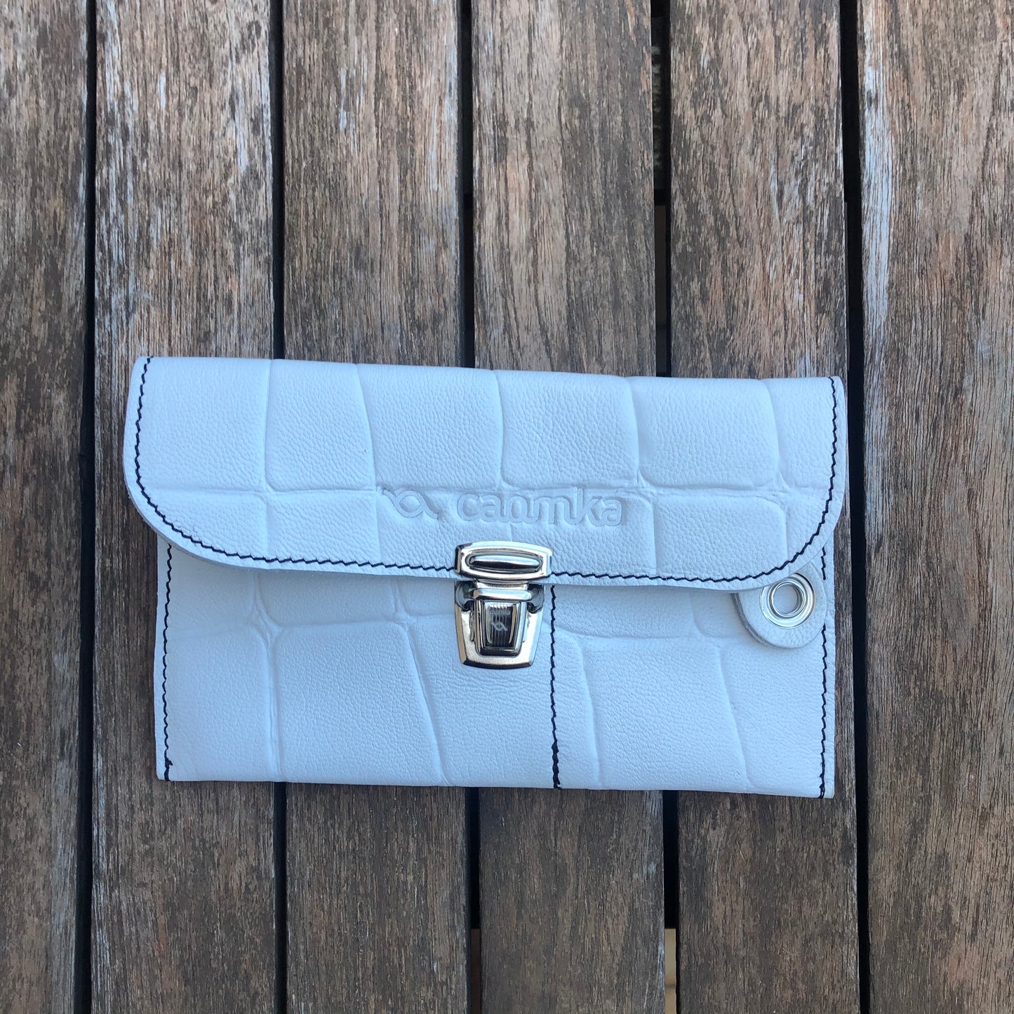 Monedero Plano en Piel natural BioCuir® CAOMKA en color Blanco