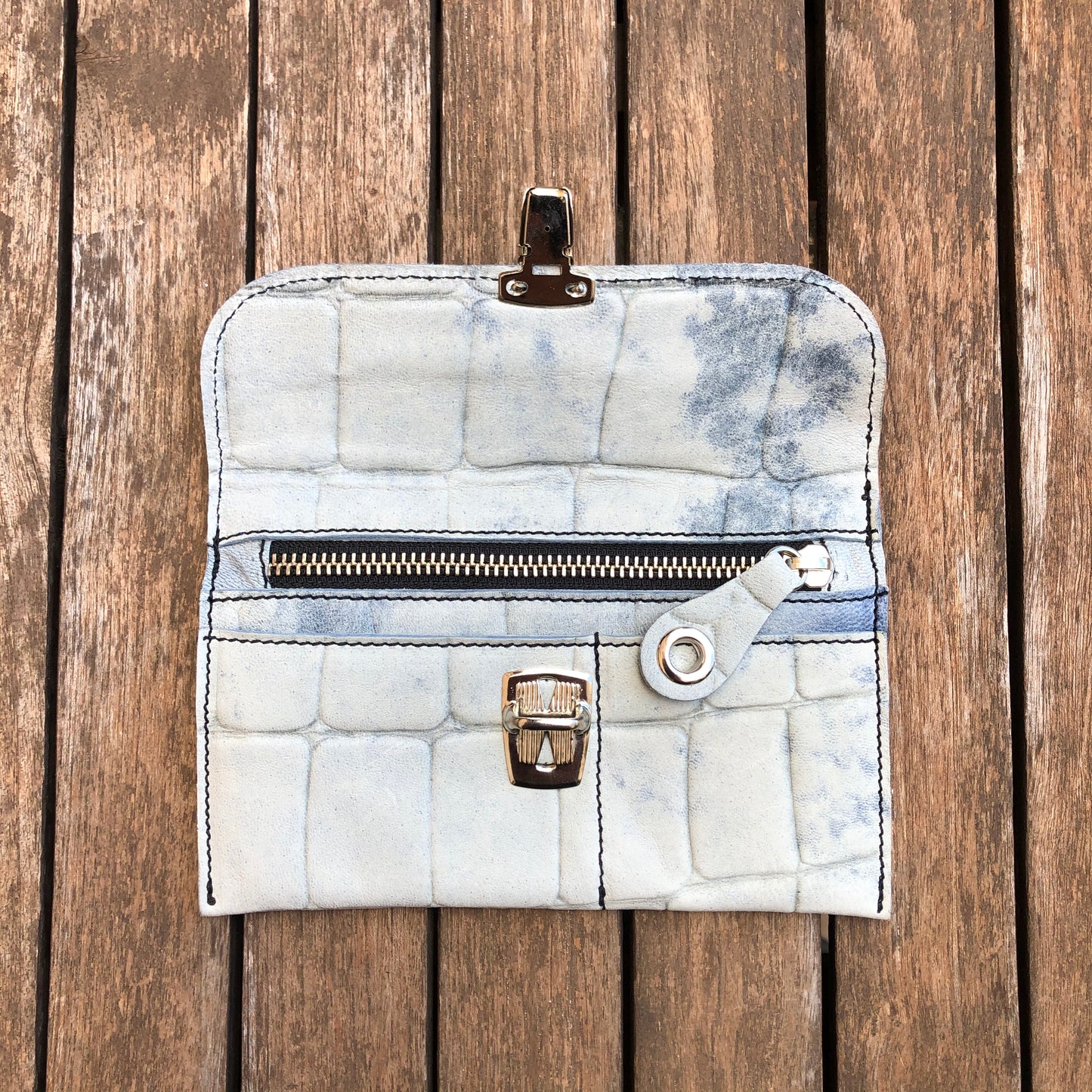Monedero Plano en Piel natural BioCuir® CAOMKA en color Azul Cielo Especial