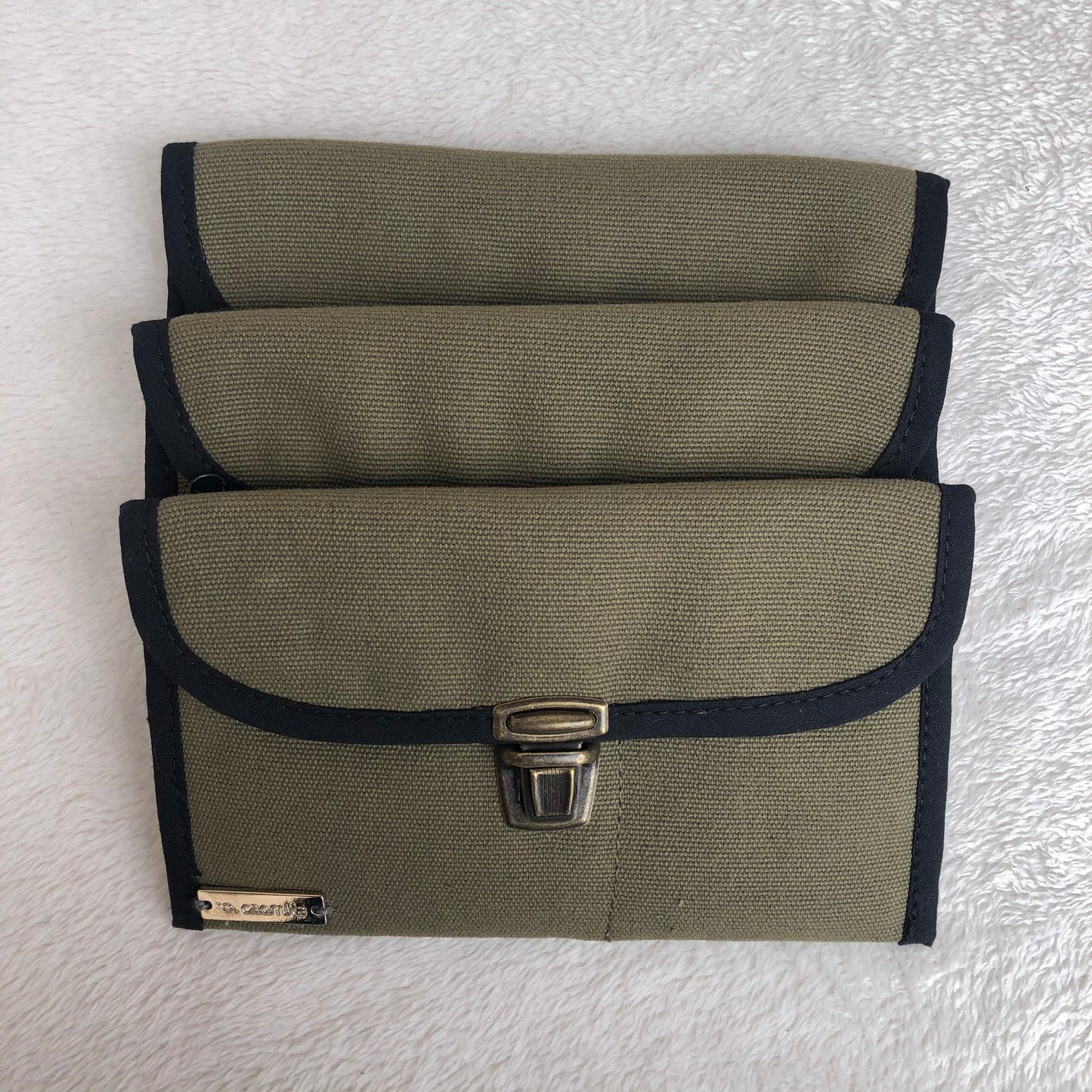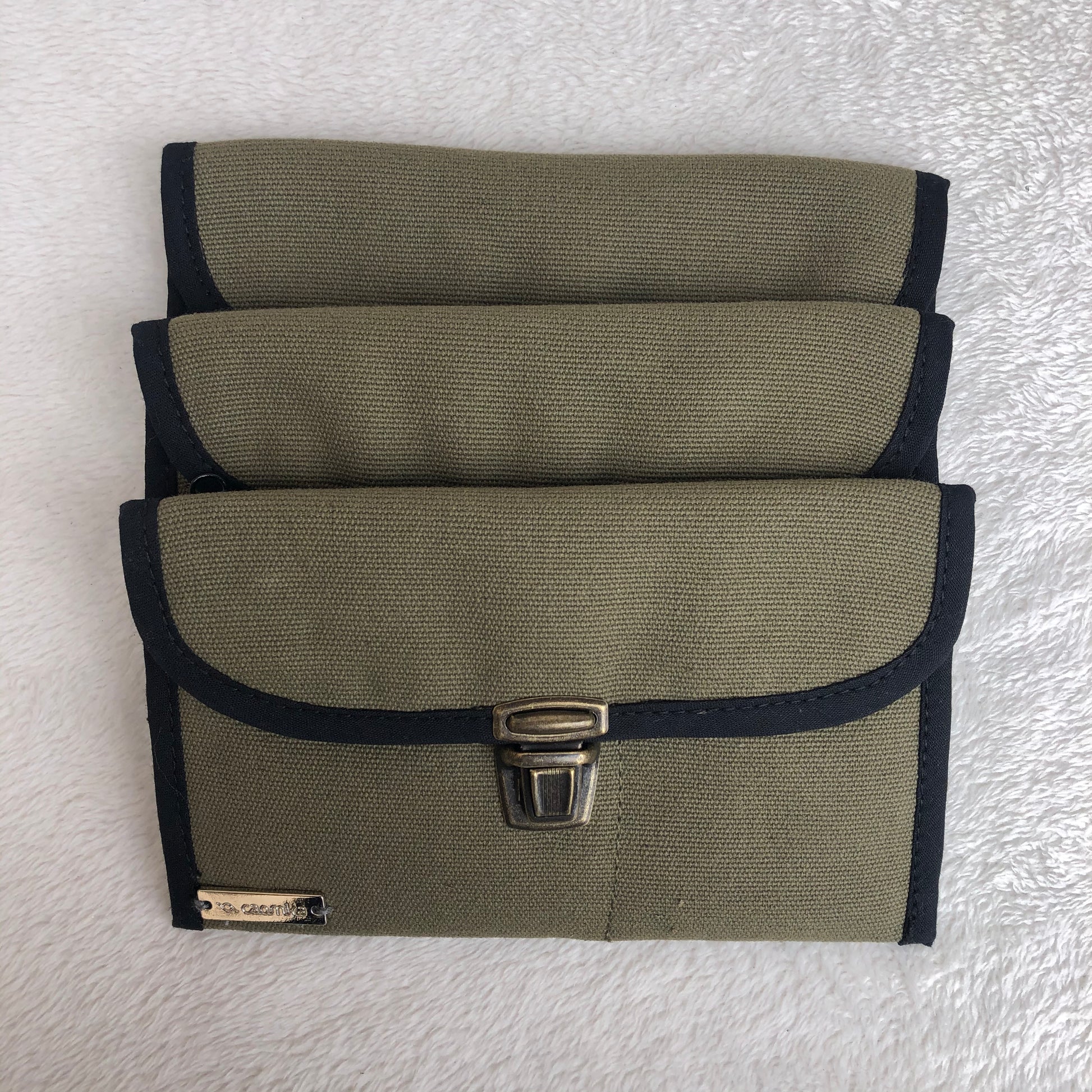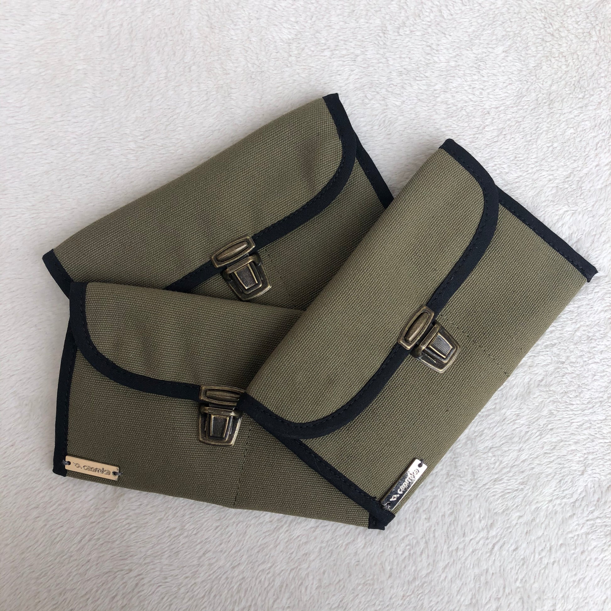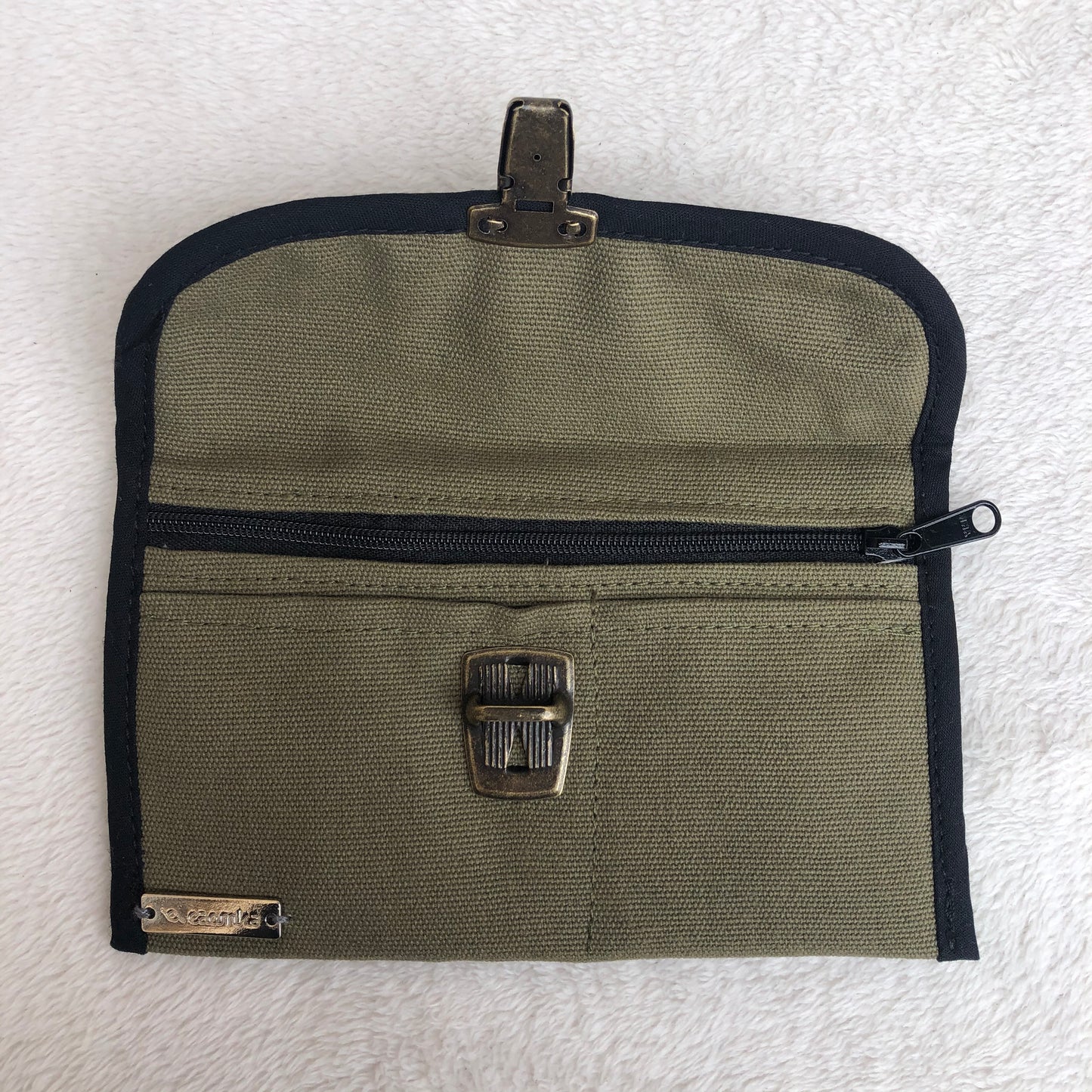 Cierre especial "Vintage" exterior. Cremallera exterior trasera y otra interior con doble tarjetero. Exterior con placa de marca plateada Caomka.
