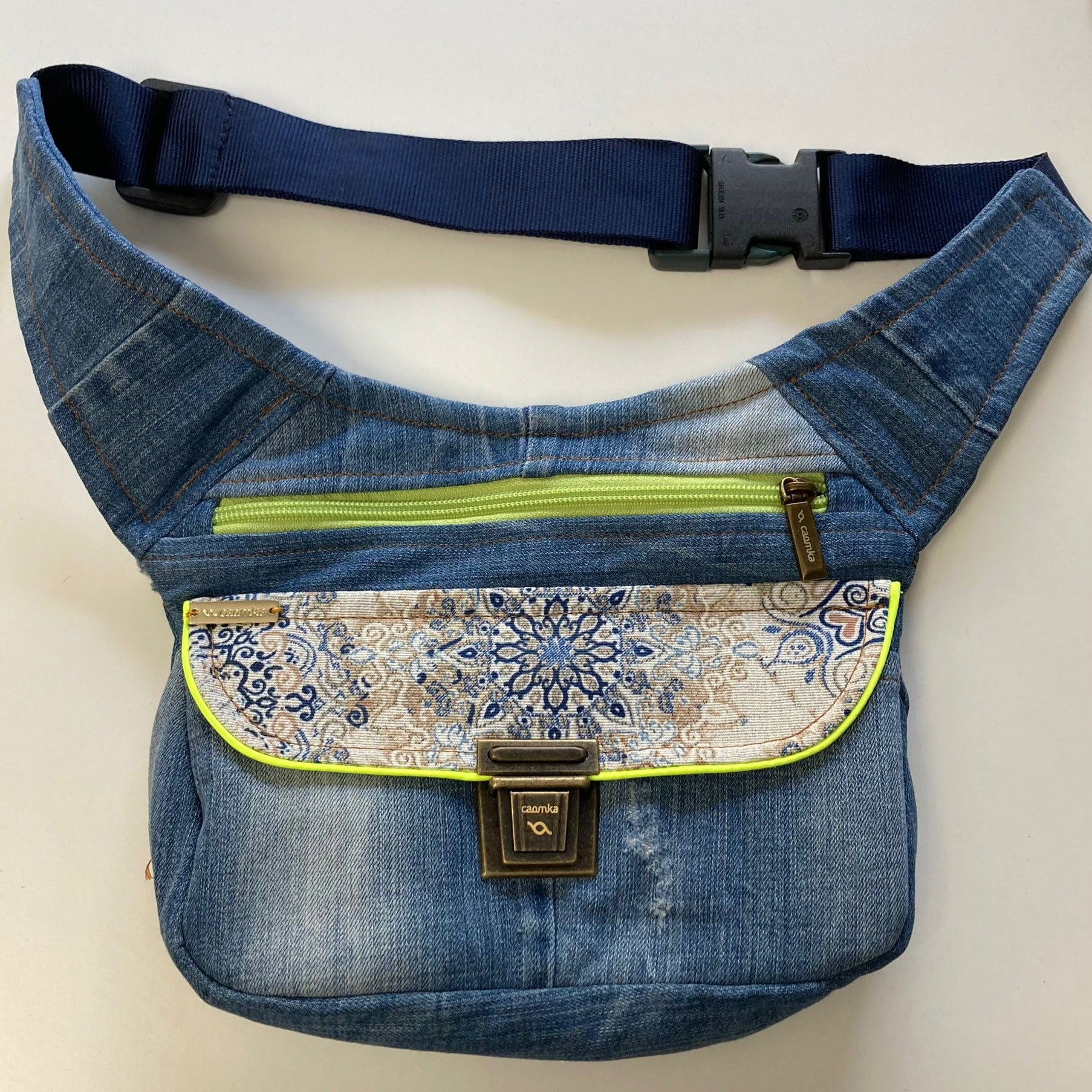 Bolso de Cadera multifunción (Riñonera - Bolso - Bandolera) en tela vaquera reciclada y resistente.