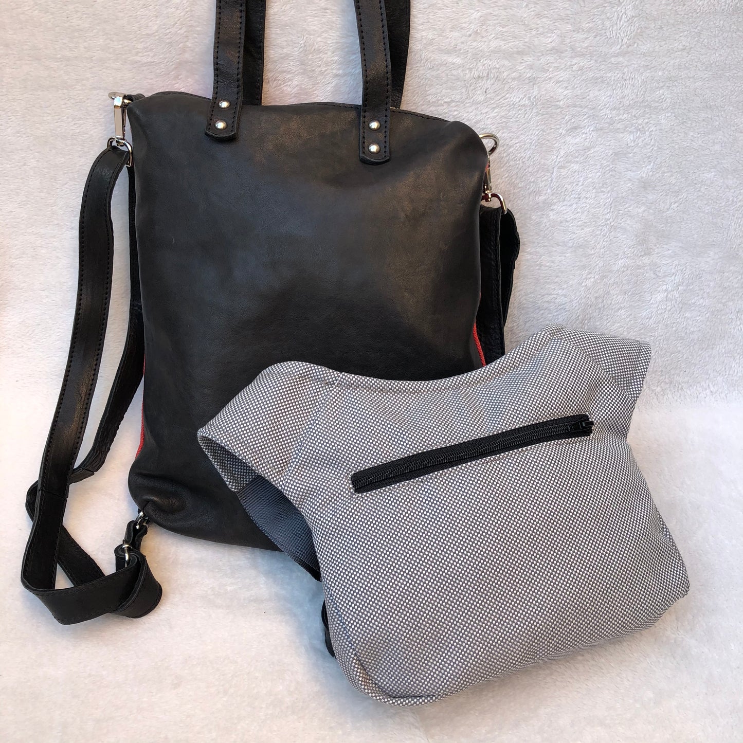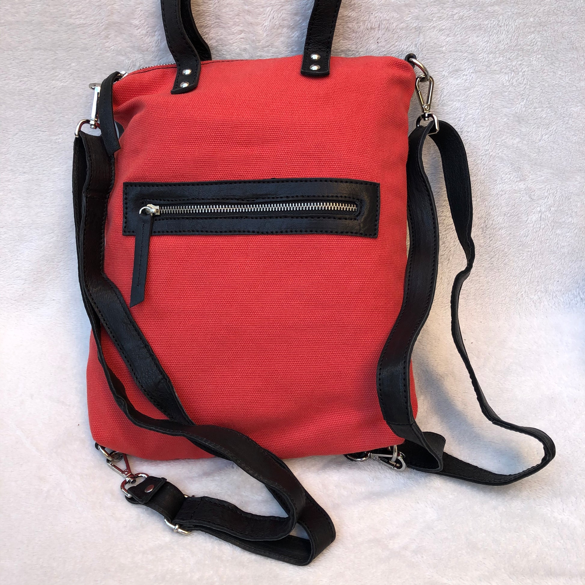 Mochila multifunción (Bandolera-Bolso-Mochila) confeccionado en piel natural Eco Fast® libre de cromo.