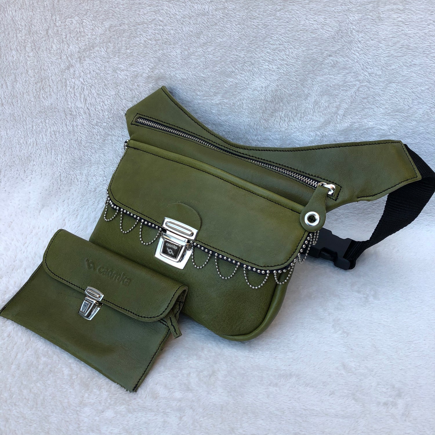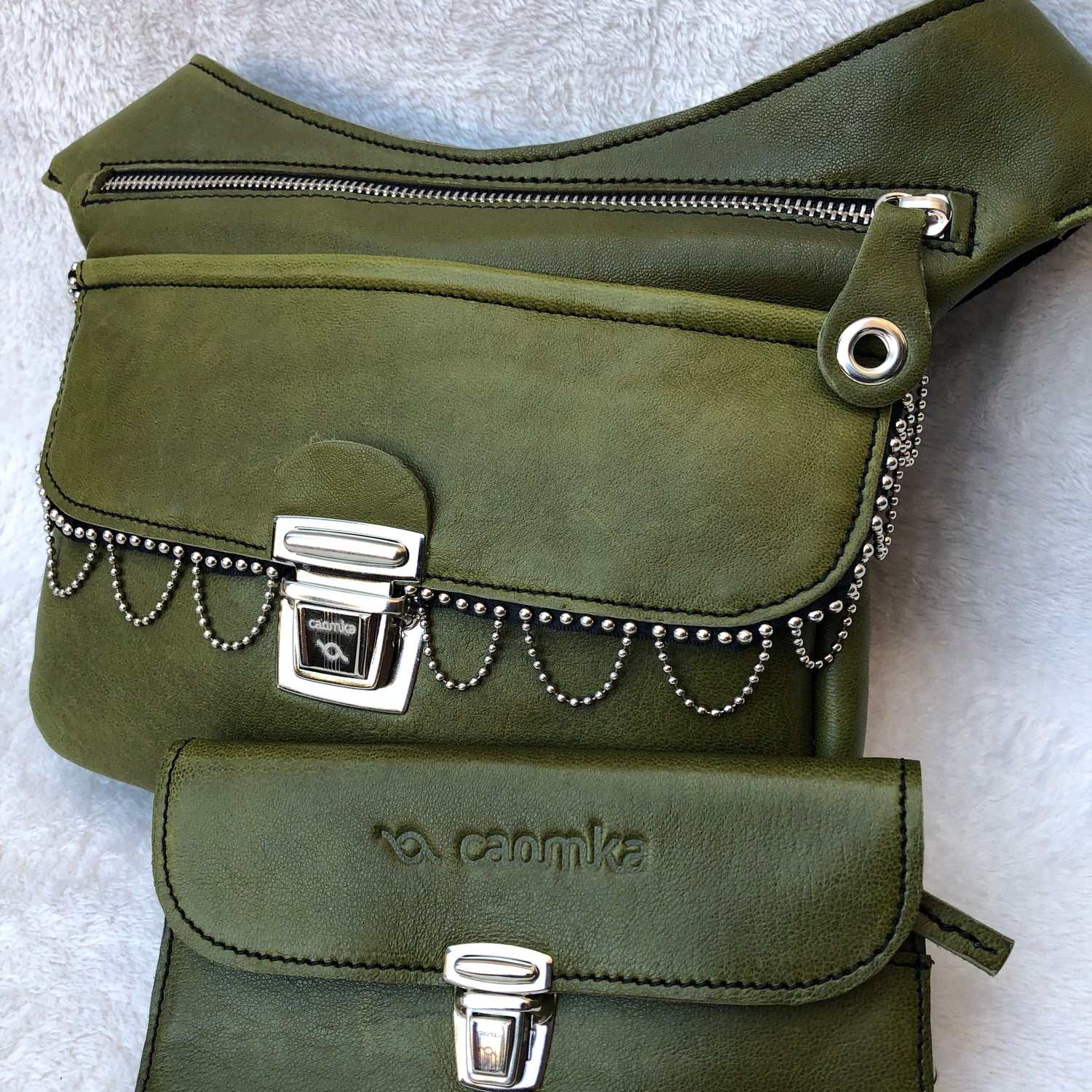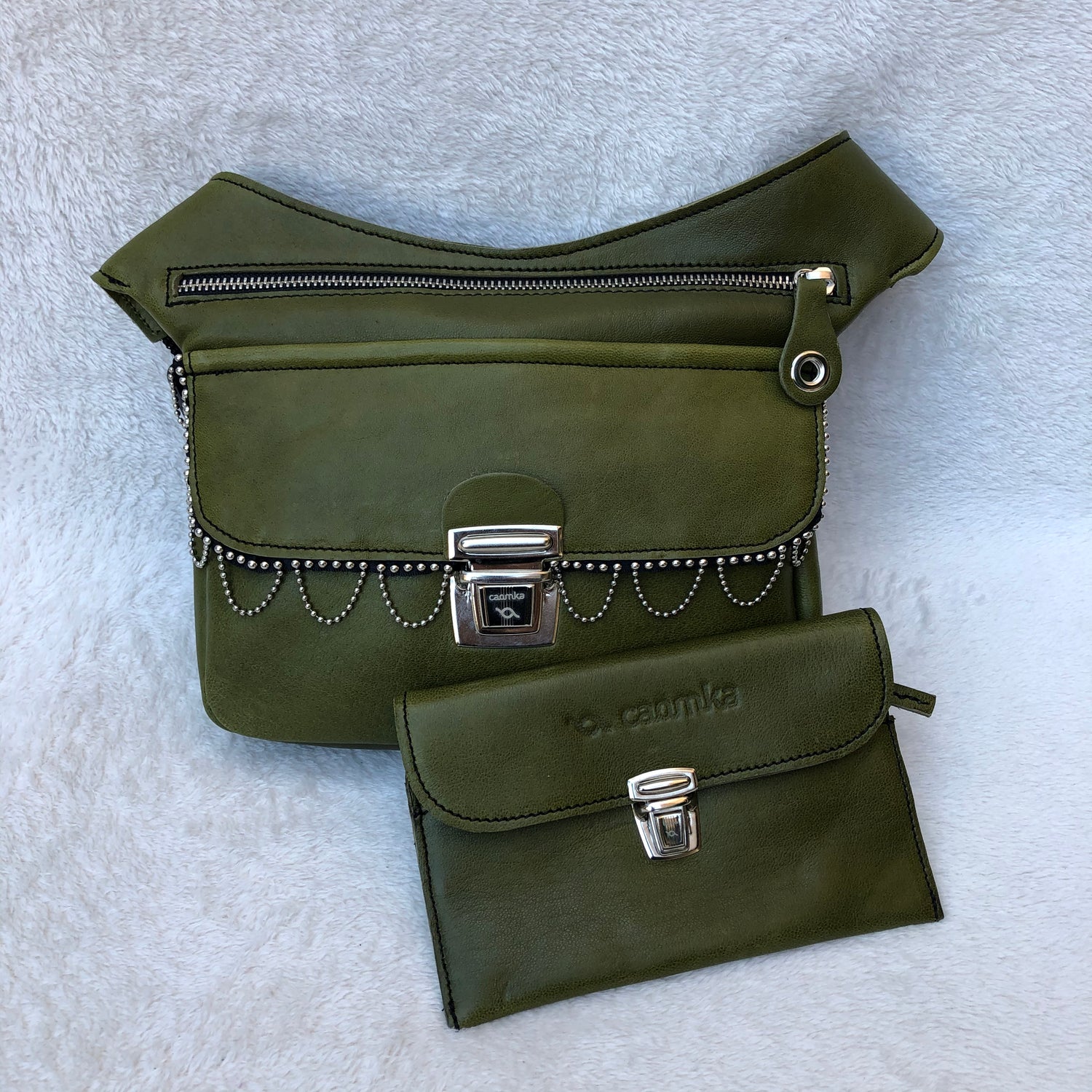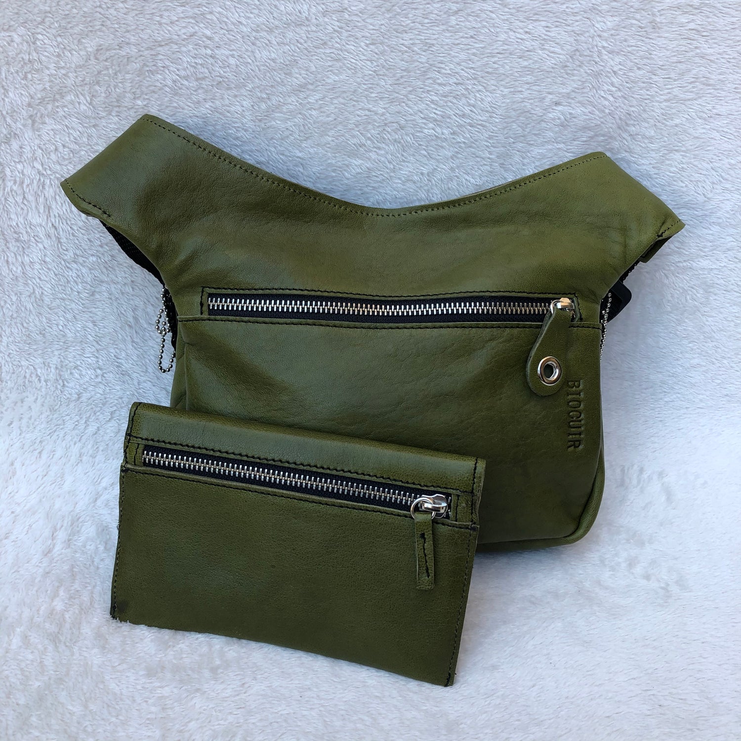 PACK Special Green Riñonera+Monedero · Piel natural BioCuir® · Pieza Única Núm. 7370