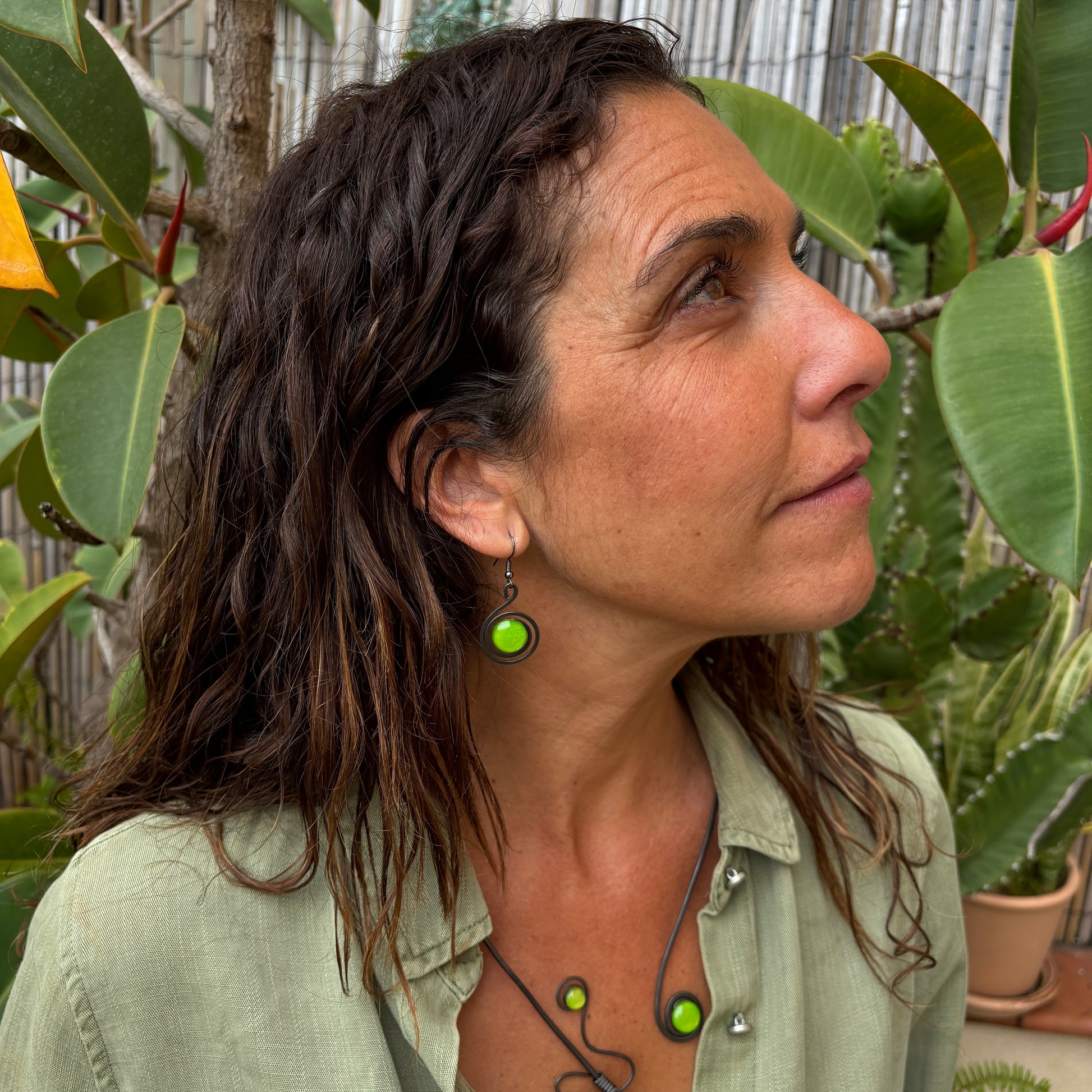 Presentamos los Pendientes Caracol Lima, una colaboración exclusiva de Caomka con el artista Mauricio Andrade. Hechos a mano en Barcelona, fusionan la fuerza luminosa del vidrio fundido lima con la elegancia escultórica del hierro forjado, en un diseño fluido, original y lleno de carácter.