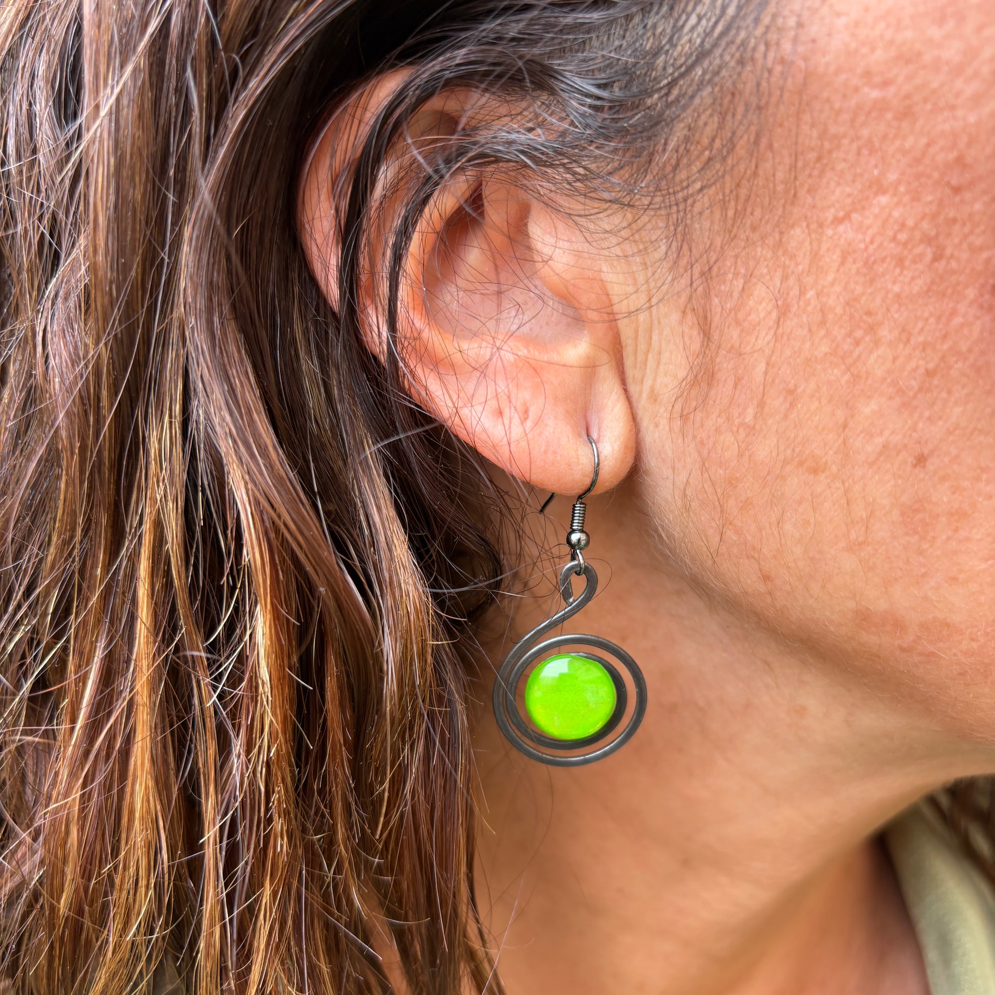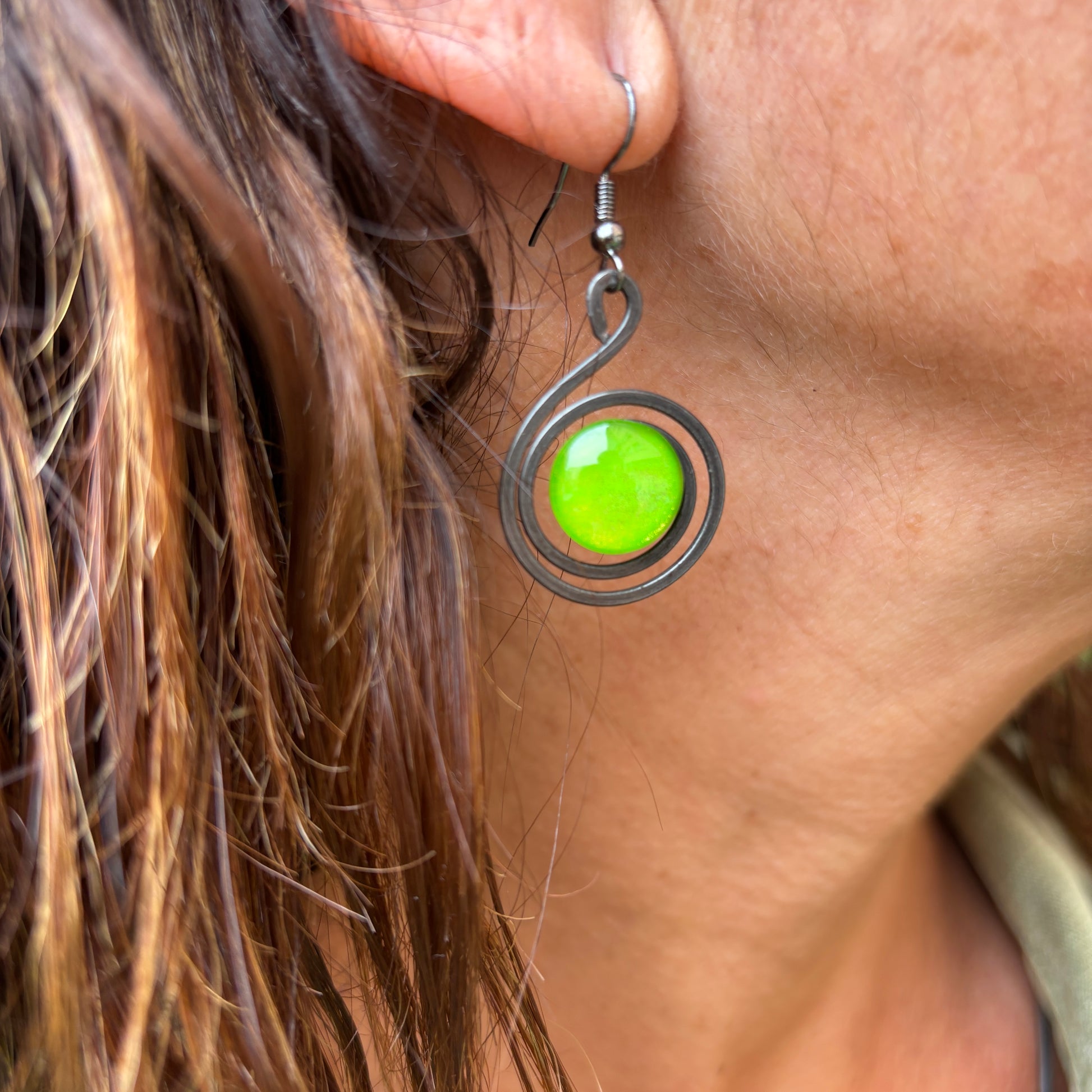 Pendientes "Caracol Lima" – Vidrio fundido y hierro forjado.