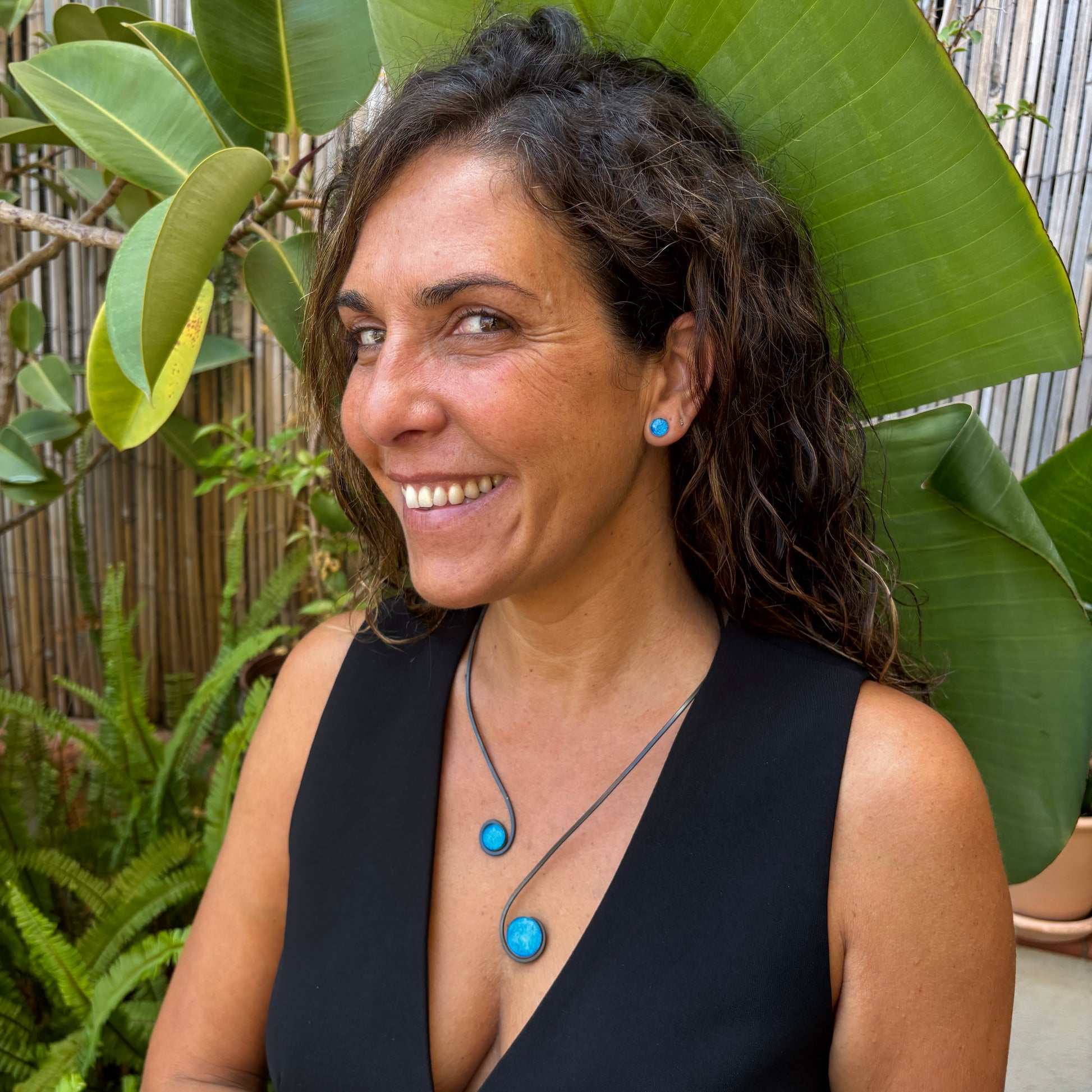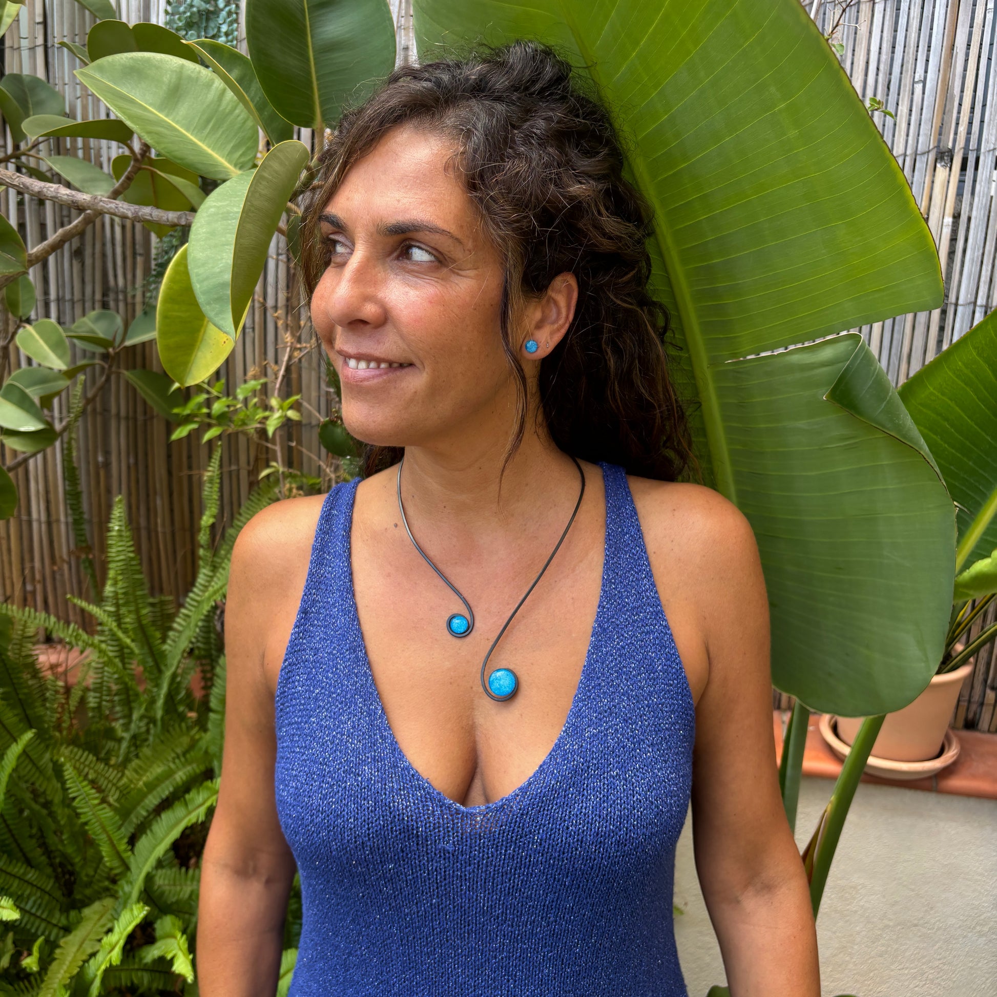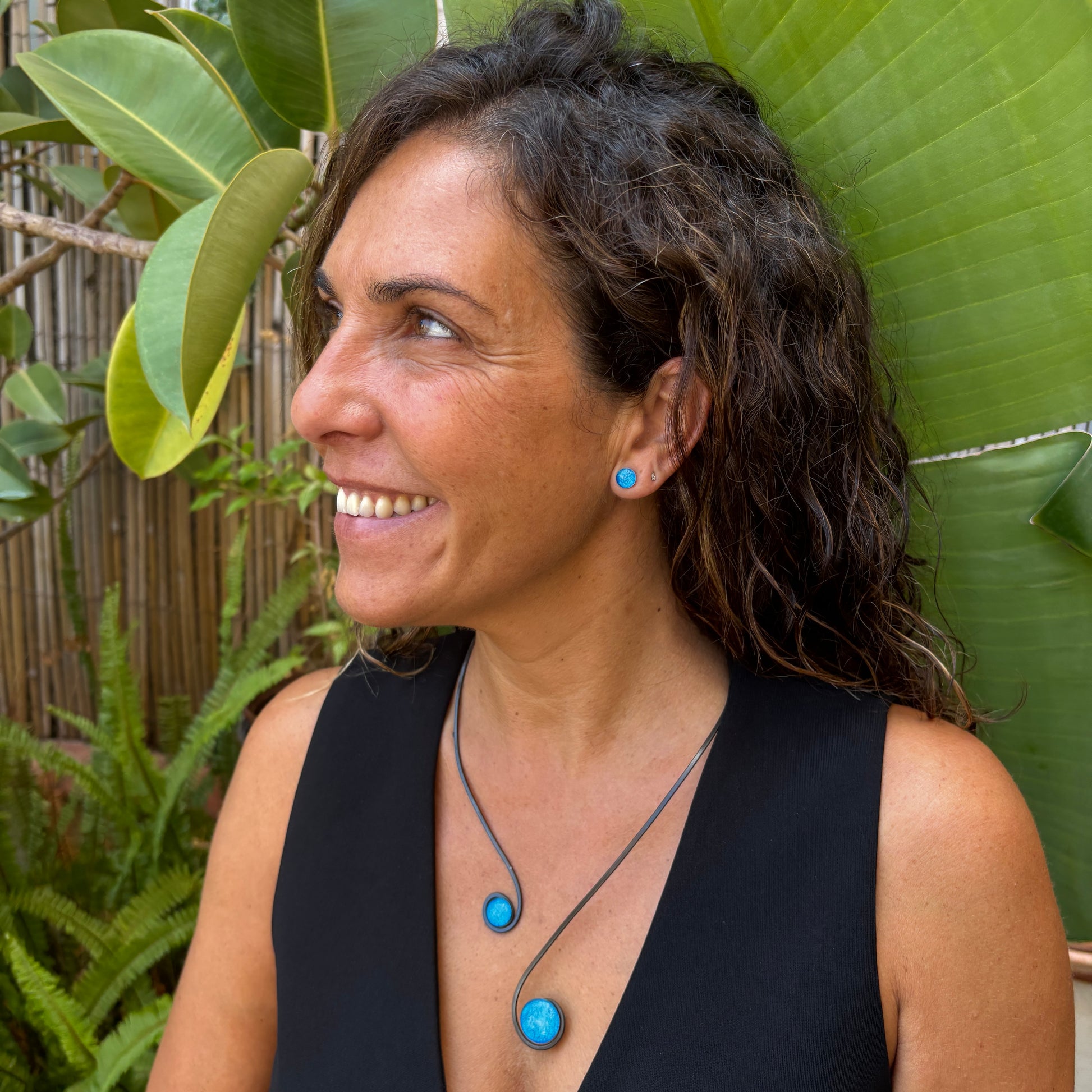 Presentamos el Pendiente Sol Azul Mediterráneo, una colaboración exclusiva de Caomka con el artista Mauricio Andrade. Hecho a mano en Barcelona, une la sutileza del vidrio fundido azul con un diseño minimalista lleno de armonía.