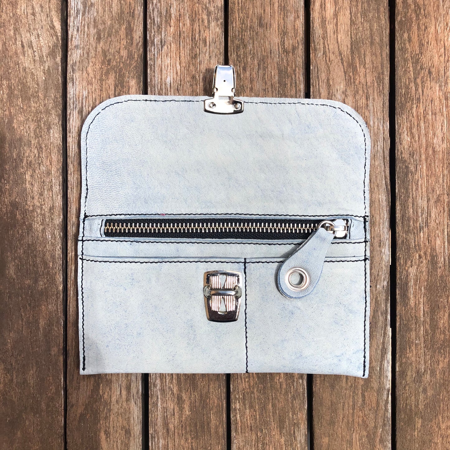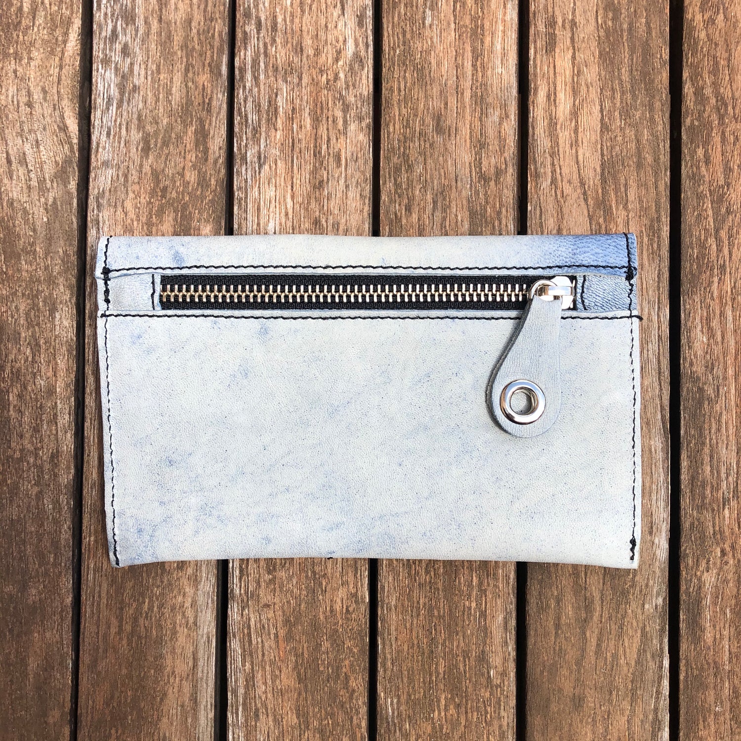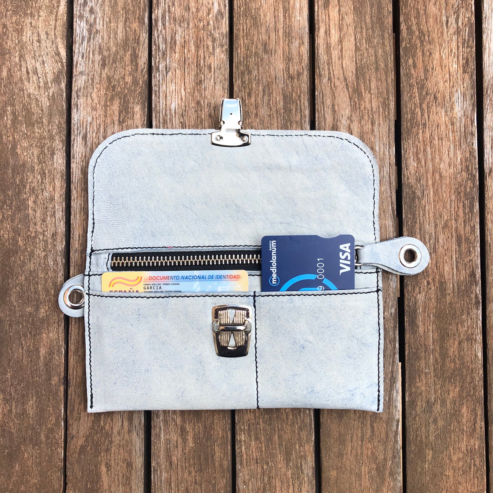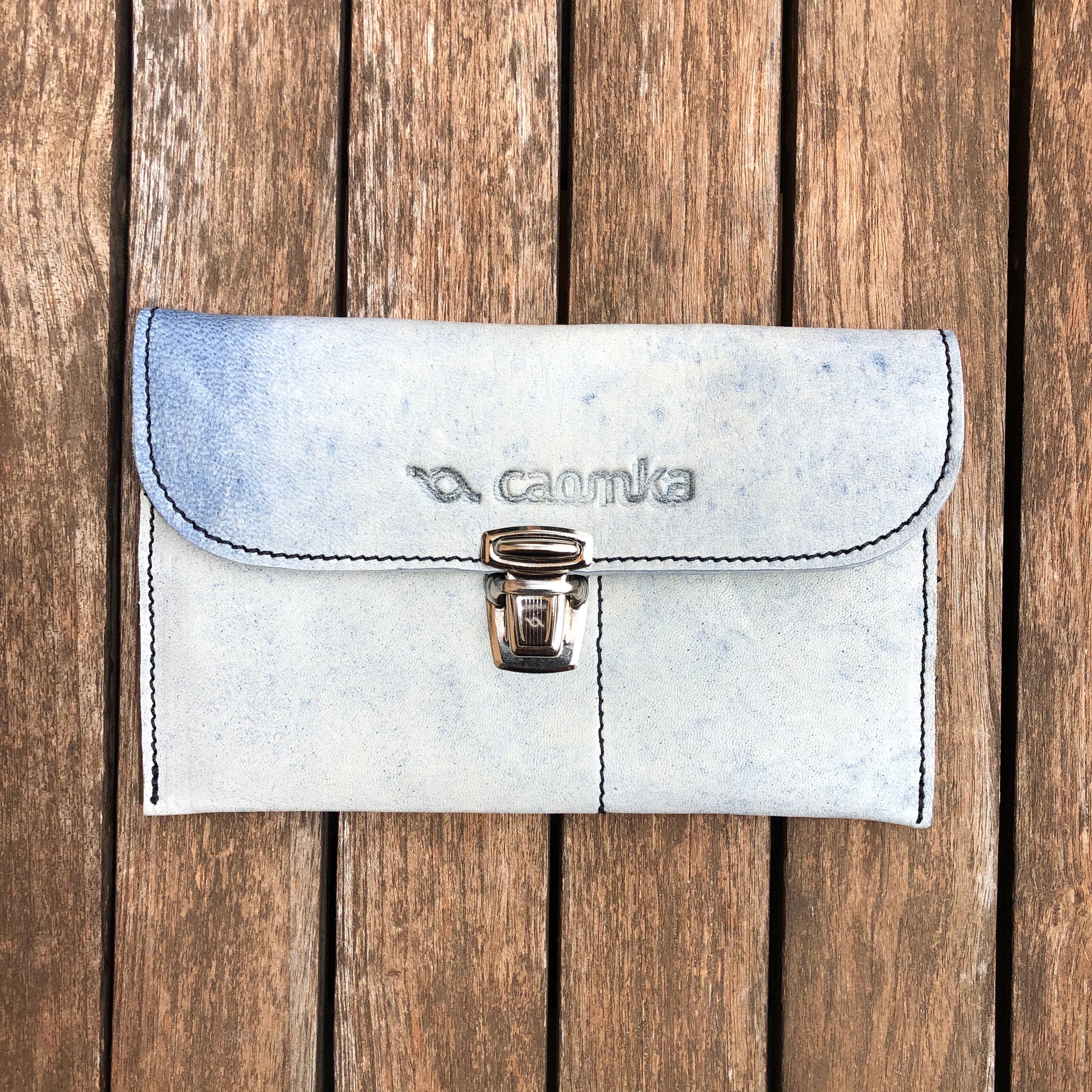 Monedero Plano en Piel natural BioCuir® CAOMKA en color azul cielo especial