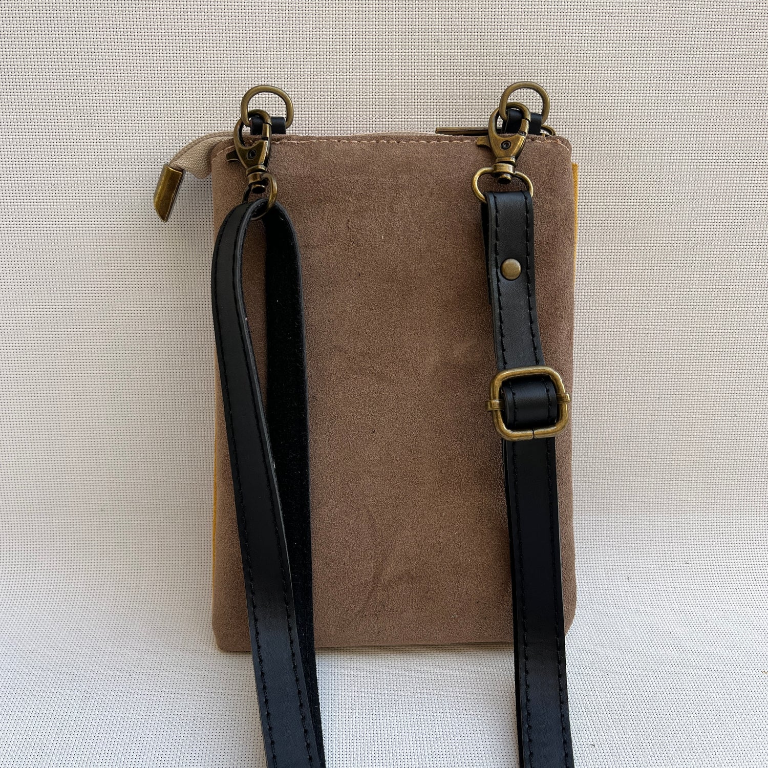Elegante bolsito ideal para llevar el móvil confeccionado en piel natural serraje.