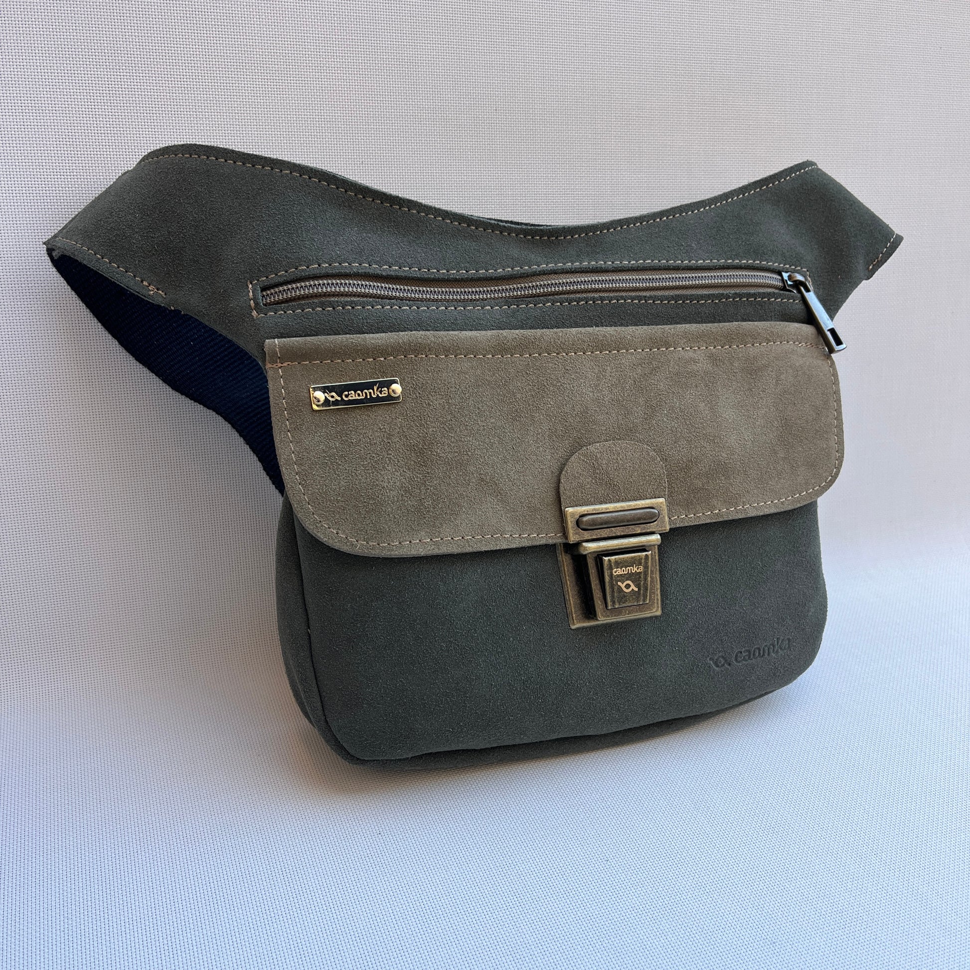 Bolso de Cadera multifunción (Riñonera - Bolso - Bandolera) confeccionado en piel de serraje con una original combinación de colores.