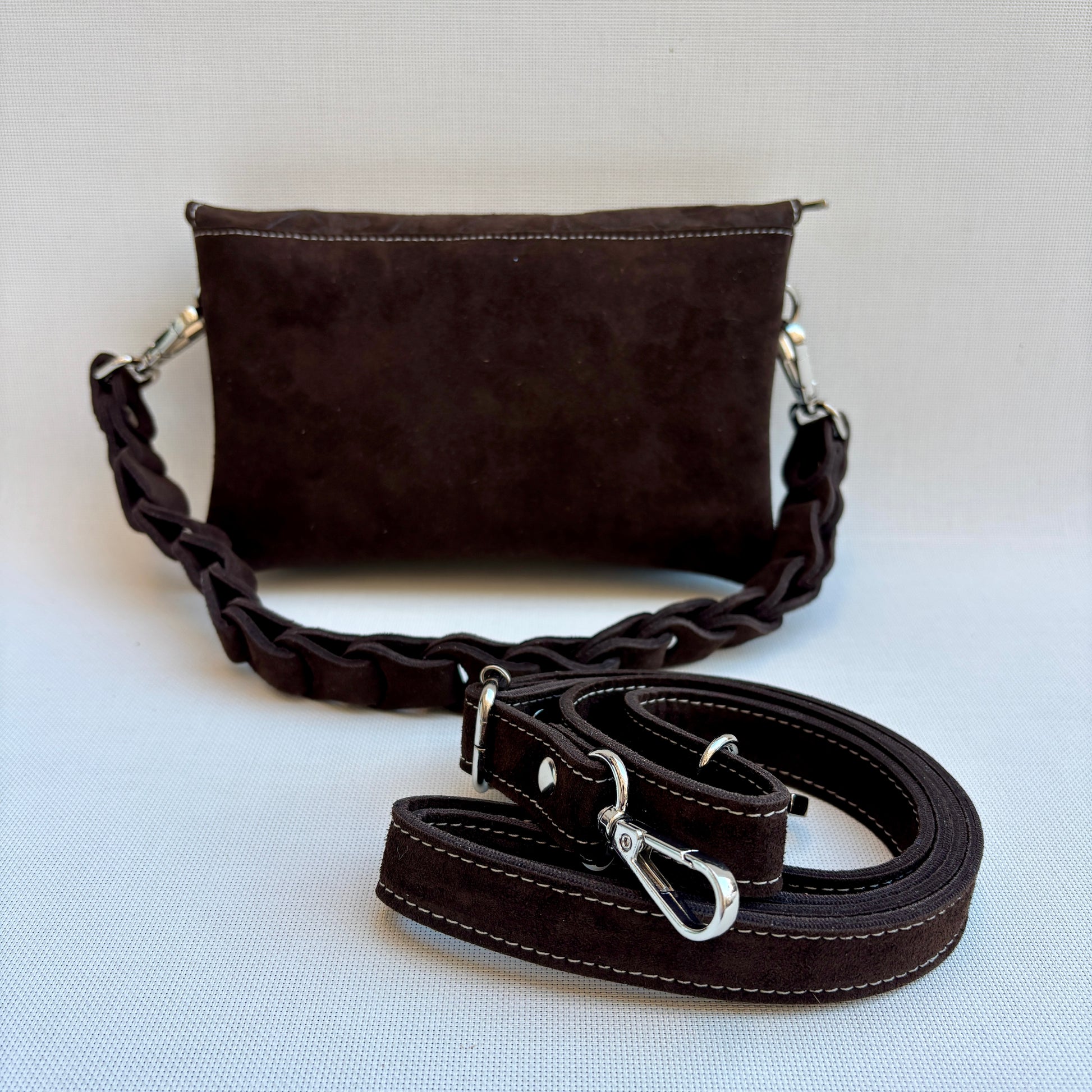 puedes llevarlo como bolso de mano, bandolera, riñonera o bolso corto al hombro — según el momento y el look.