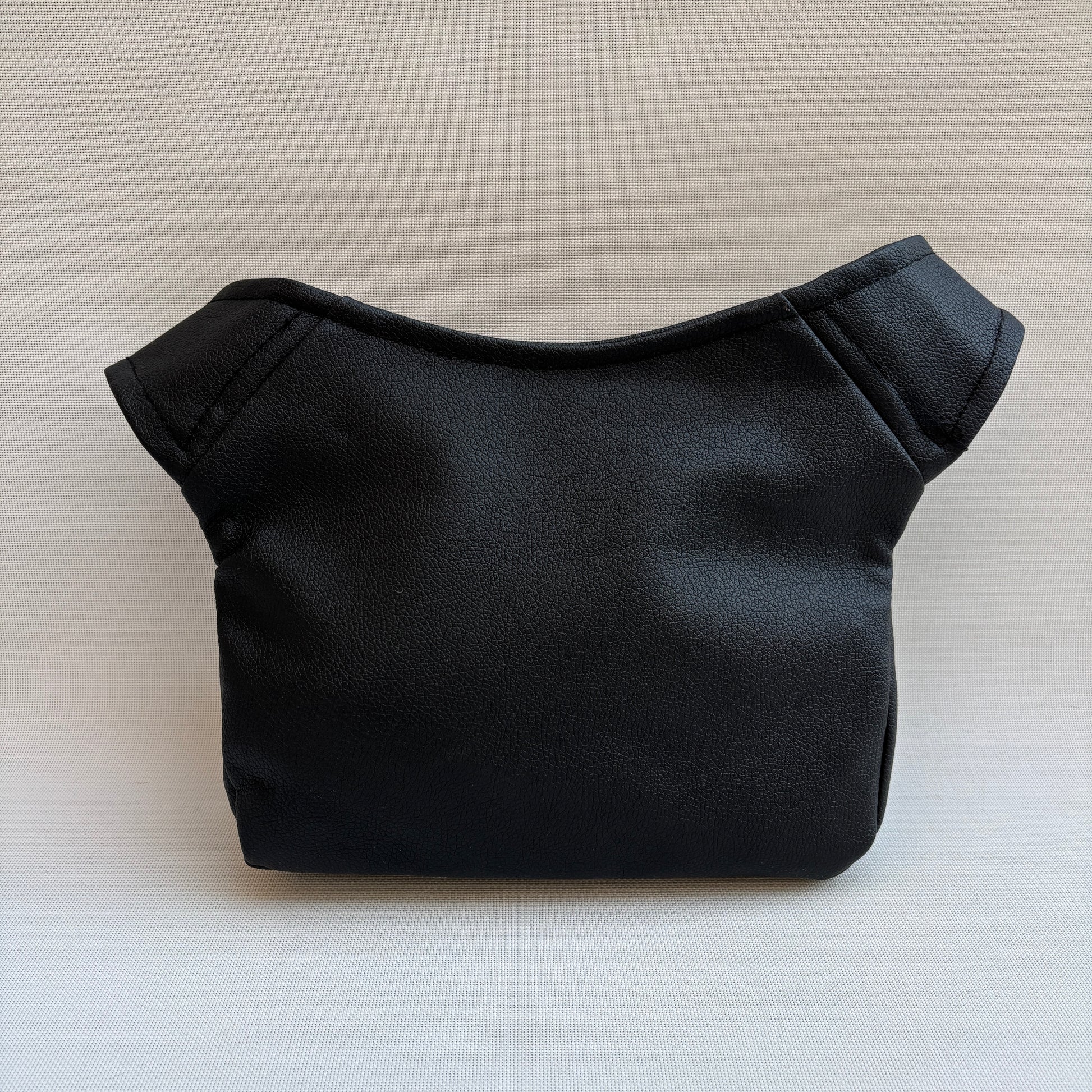Cuerpo principal confeccionado en polipiel negra de tacto suave y resistente.