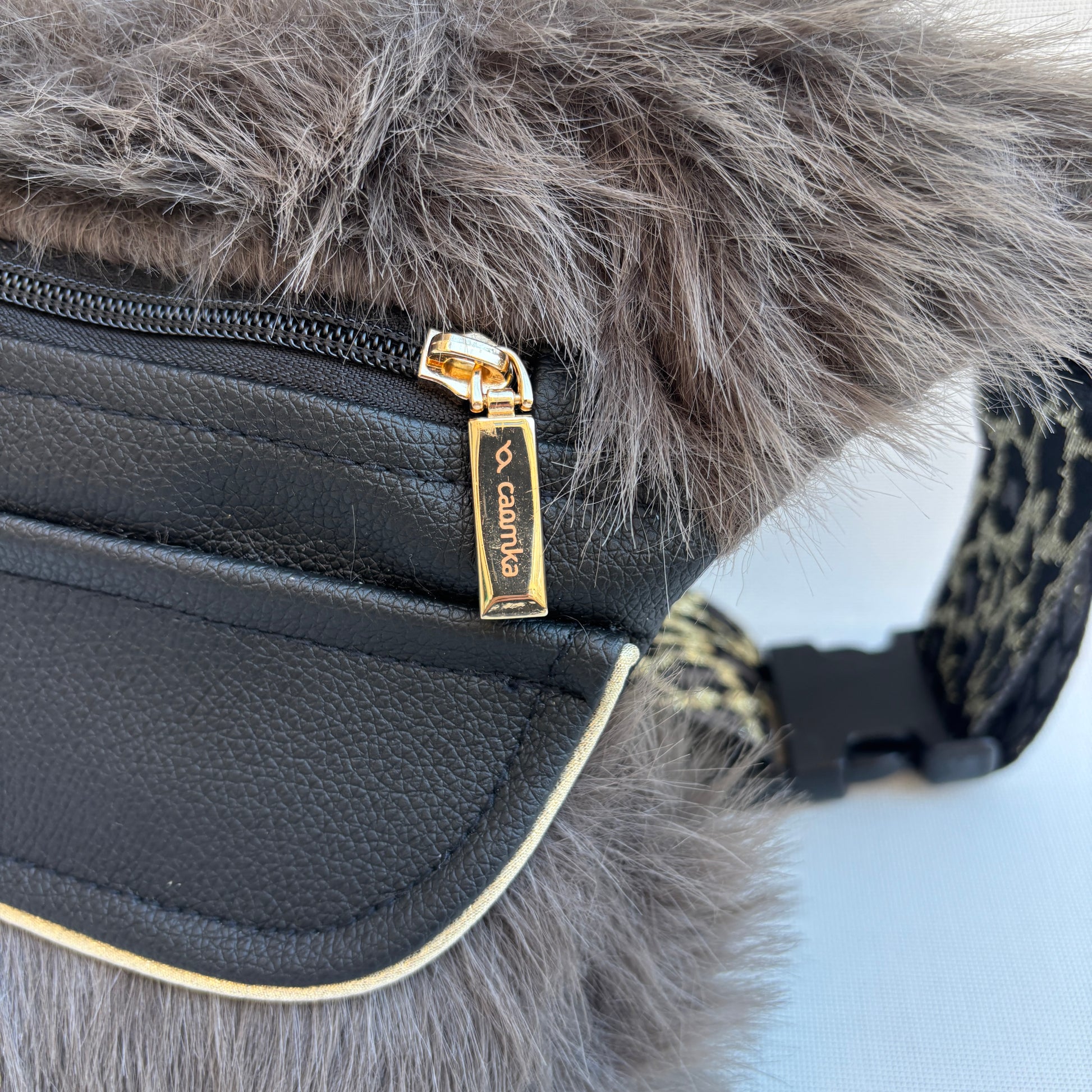 El contraste entre la textura envolvente del pelo, los acabados en dorado brillante y la solapa estructurada crea una riñonera sofisticada, atrevida y profundamente especial. Una pieza pensada para quien busca lujo, carácter y exclusividad sin concesiones.