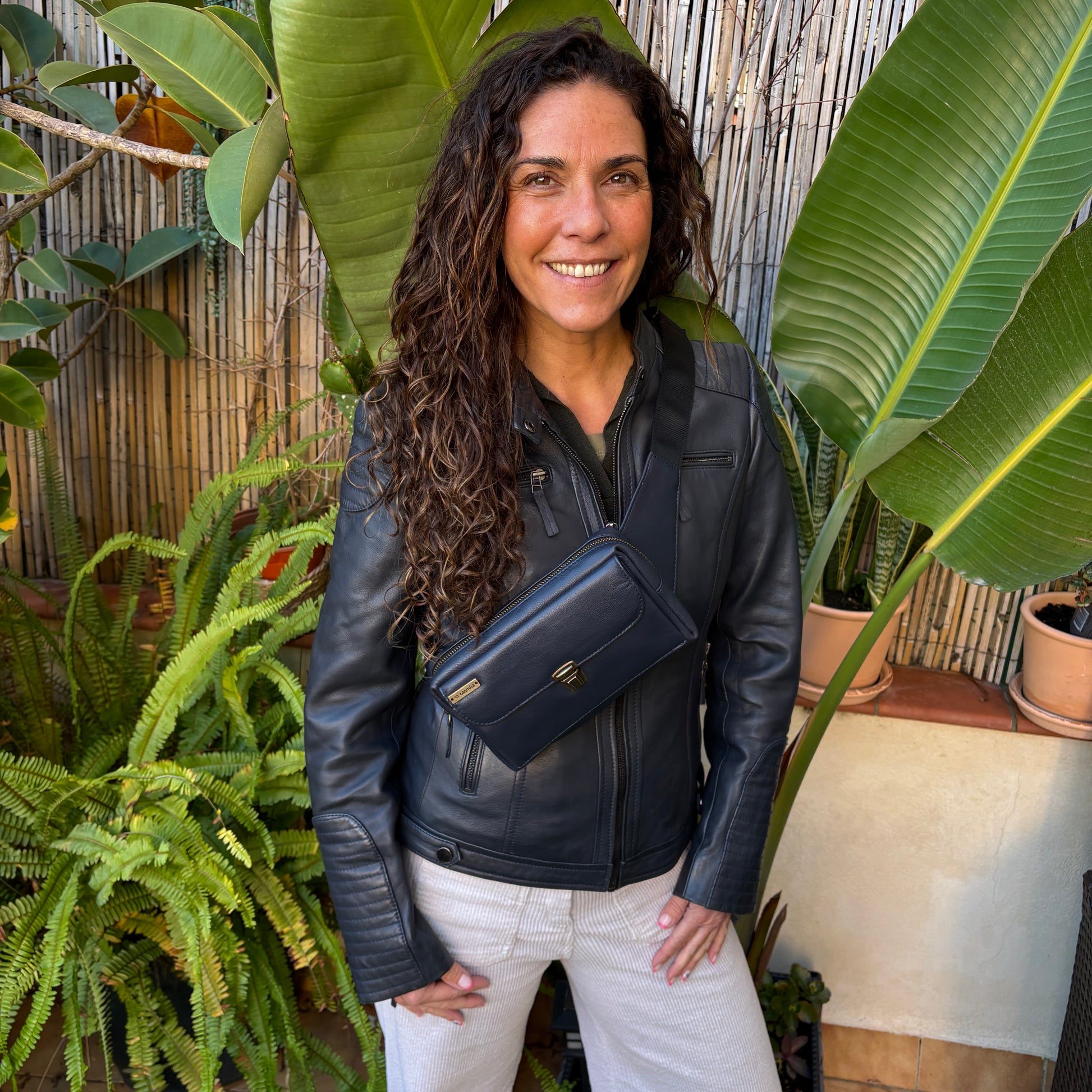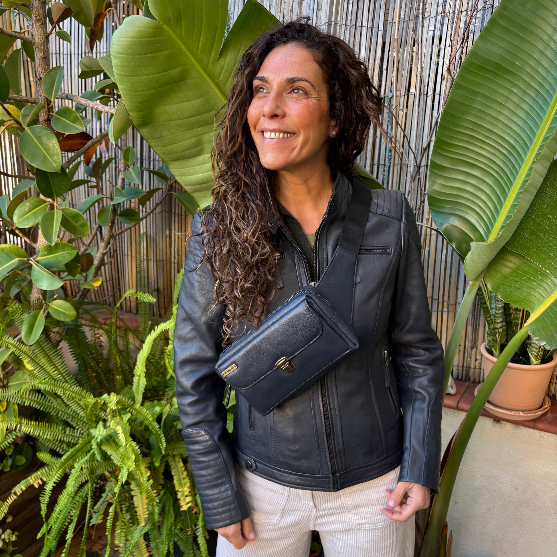 Confeccionada íntegramente en piel suave y flexible, su diseño ergonómico se adapta al cuerpo de forma natural, repartiendo el peso y ofreciendo una sensación de ligereza incluso cuando va llena.