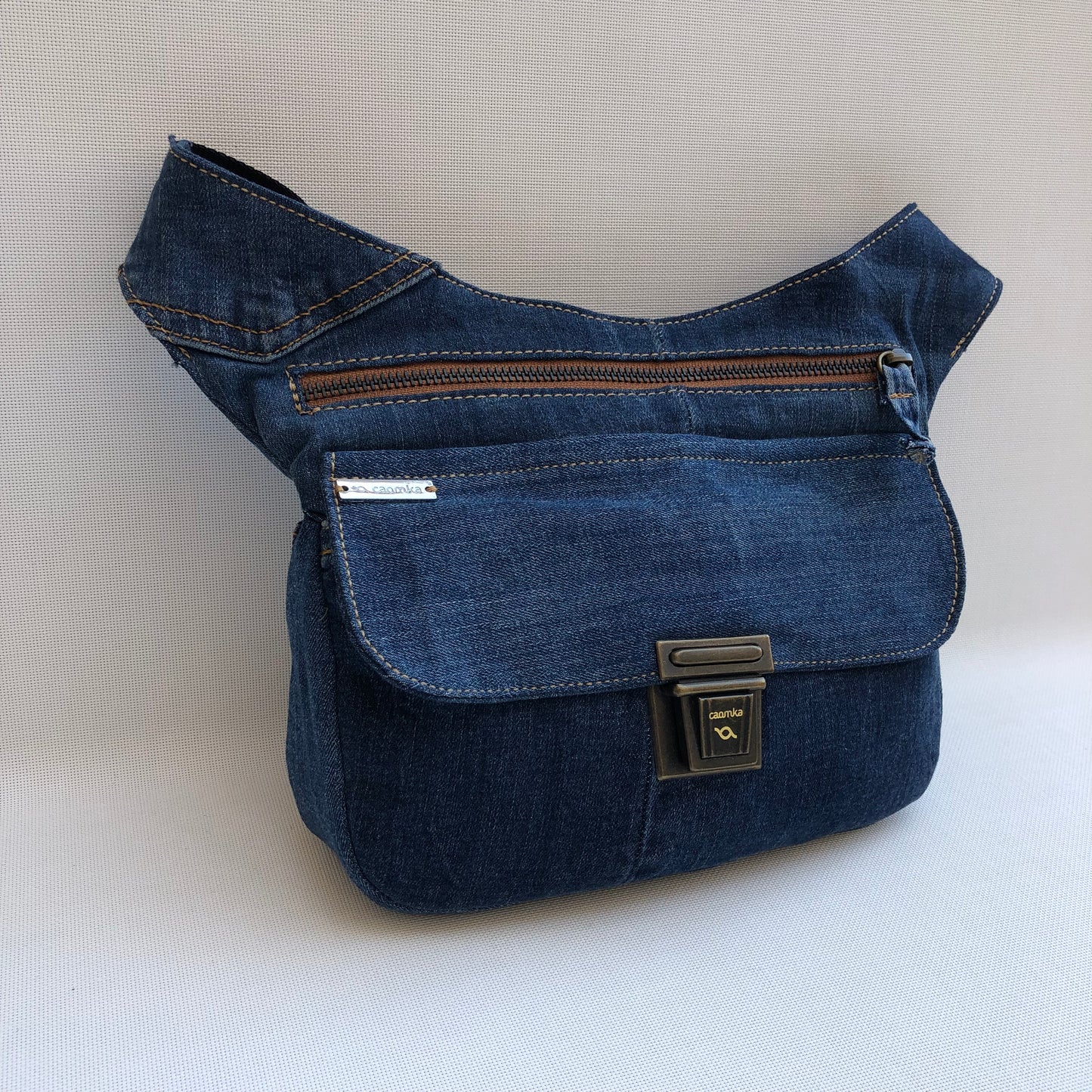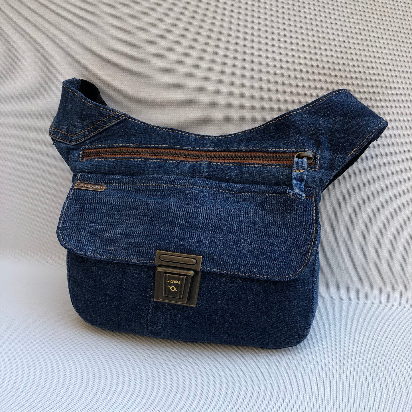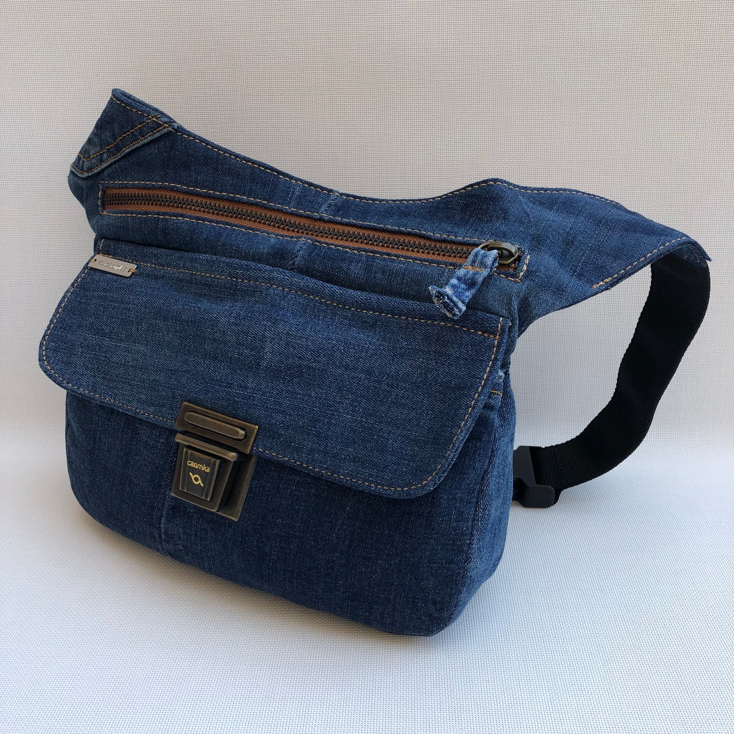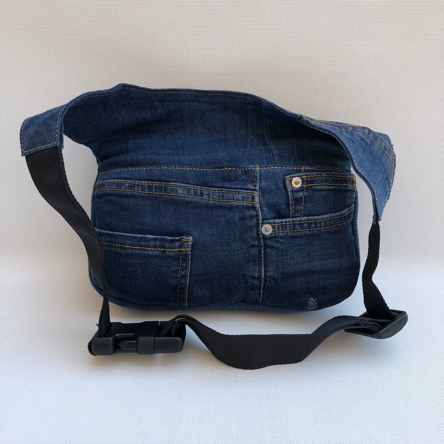 Bolso de Cadera multifunción (Riñonera - Bolso - Bandolera) en tela vaquera reciclada y resistente.