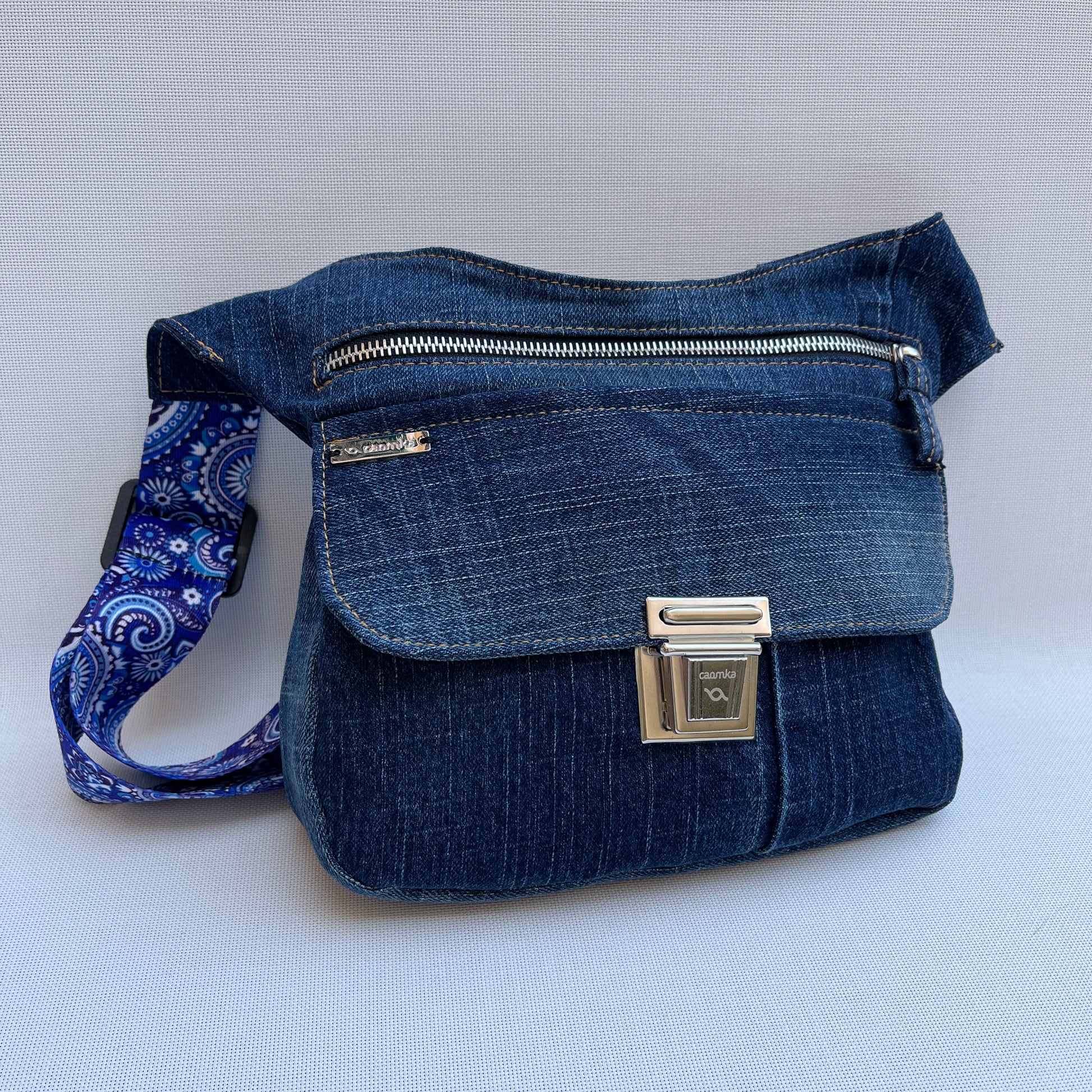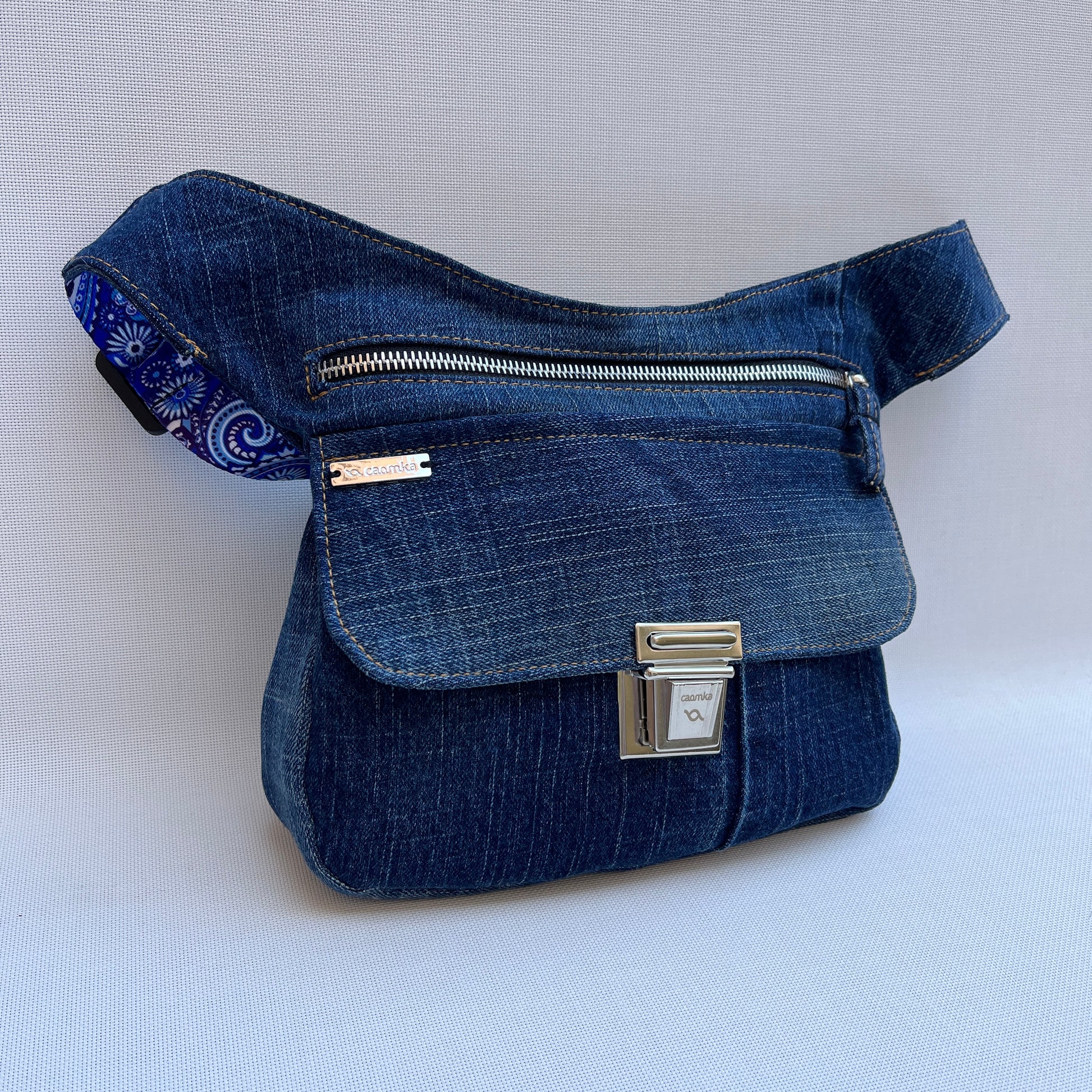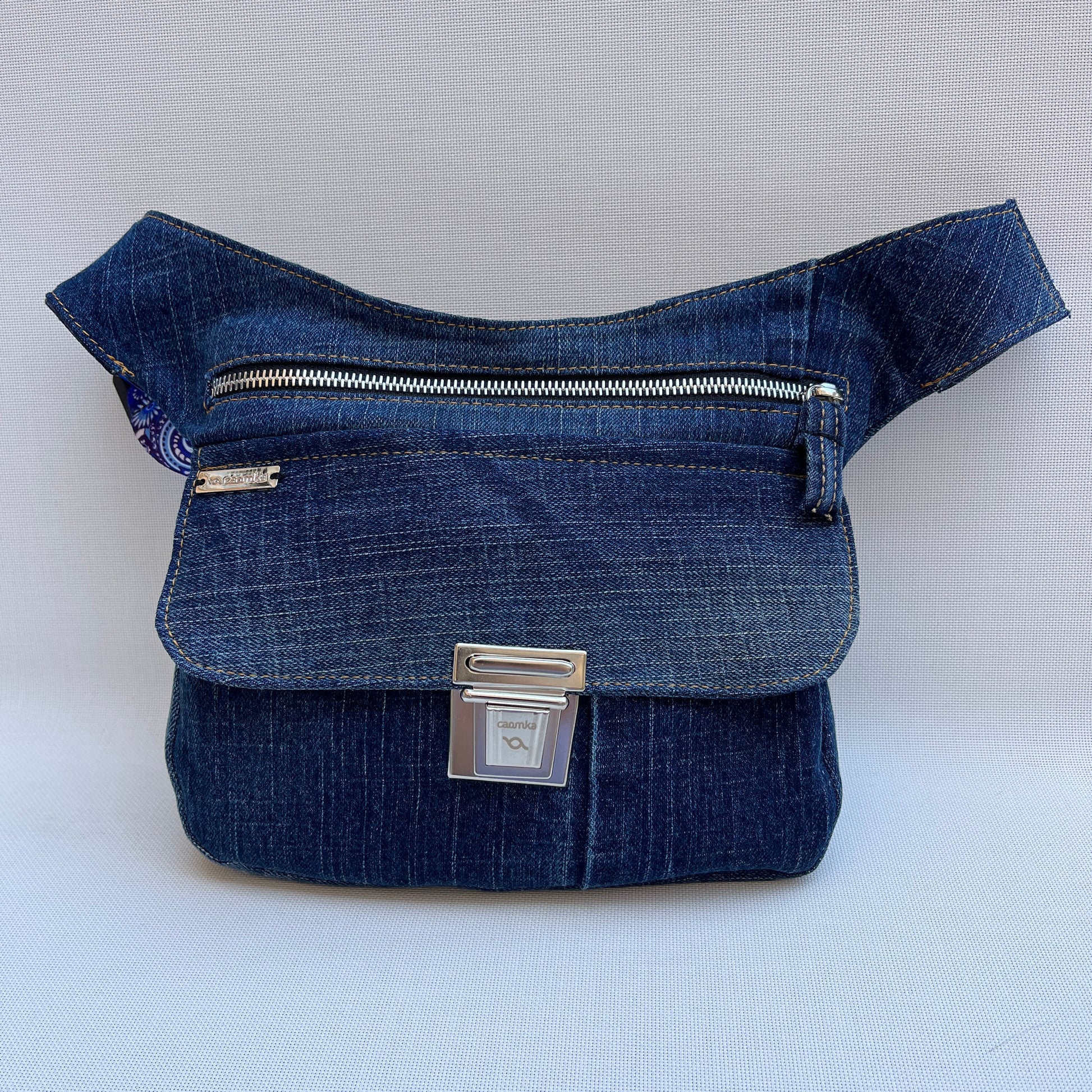 Bolso de Cadera multifunción (Riñonera - Bolso - Bandolera) en tela vaquera reciclada y resistente.