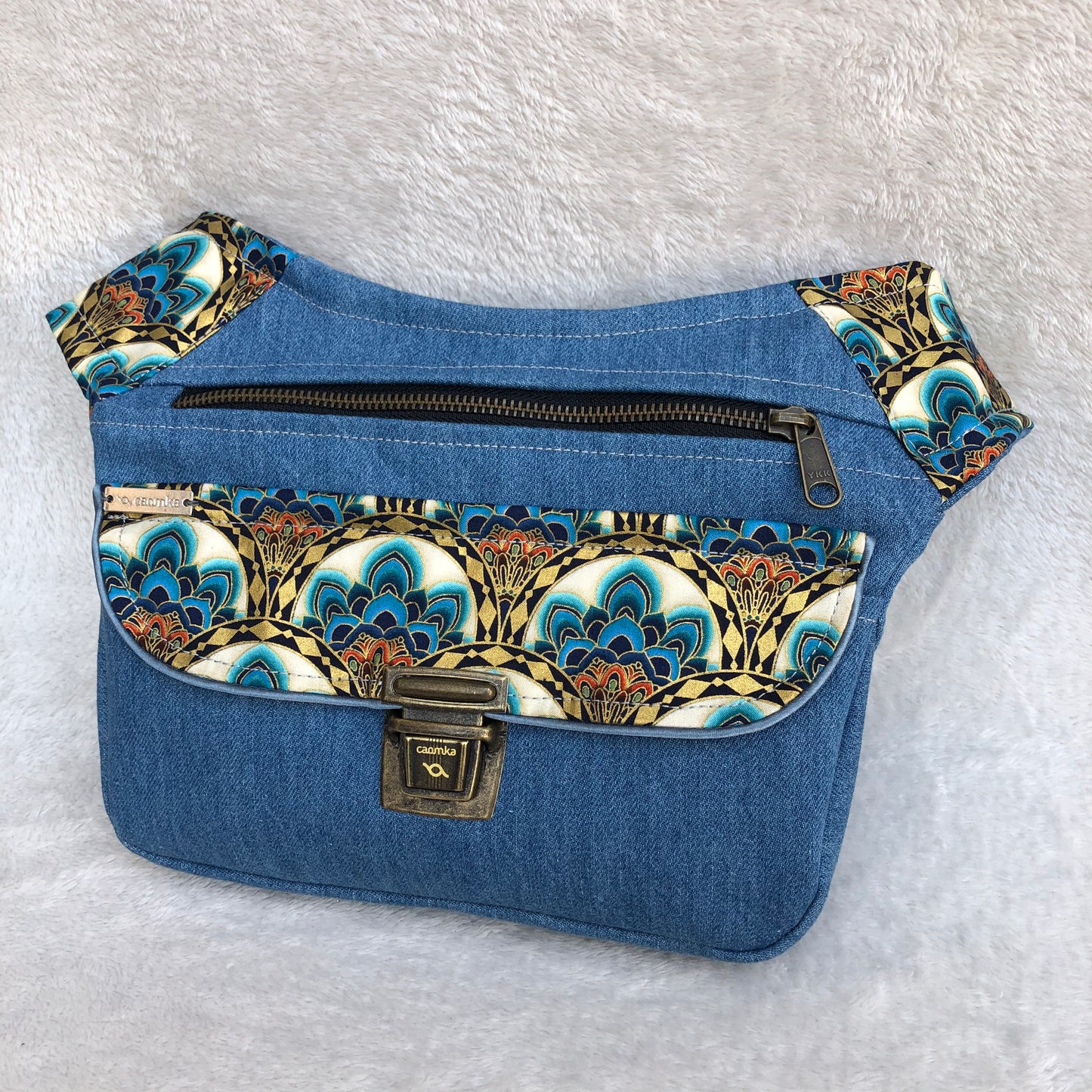 Riñonera de diseño: "Special Blue Jeans & Old Gold"