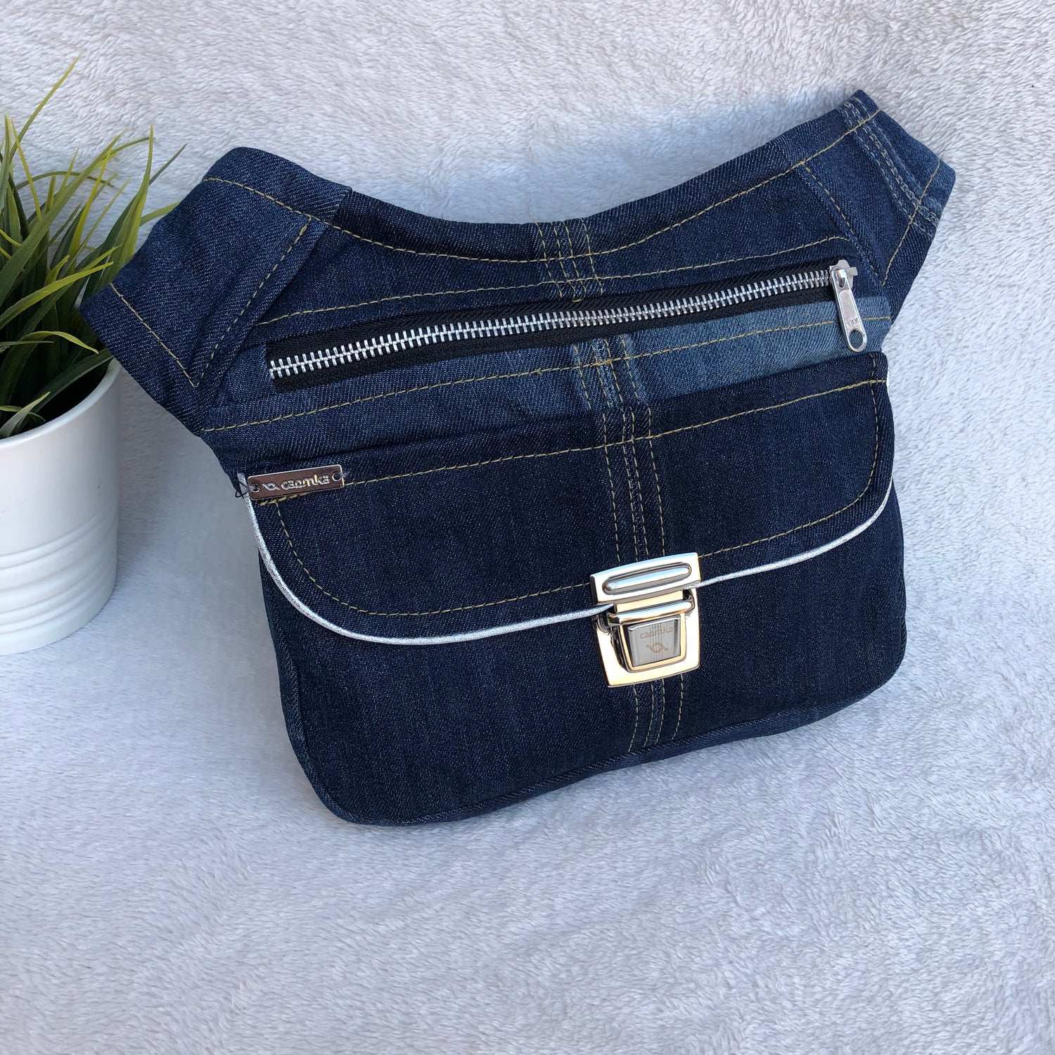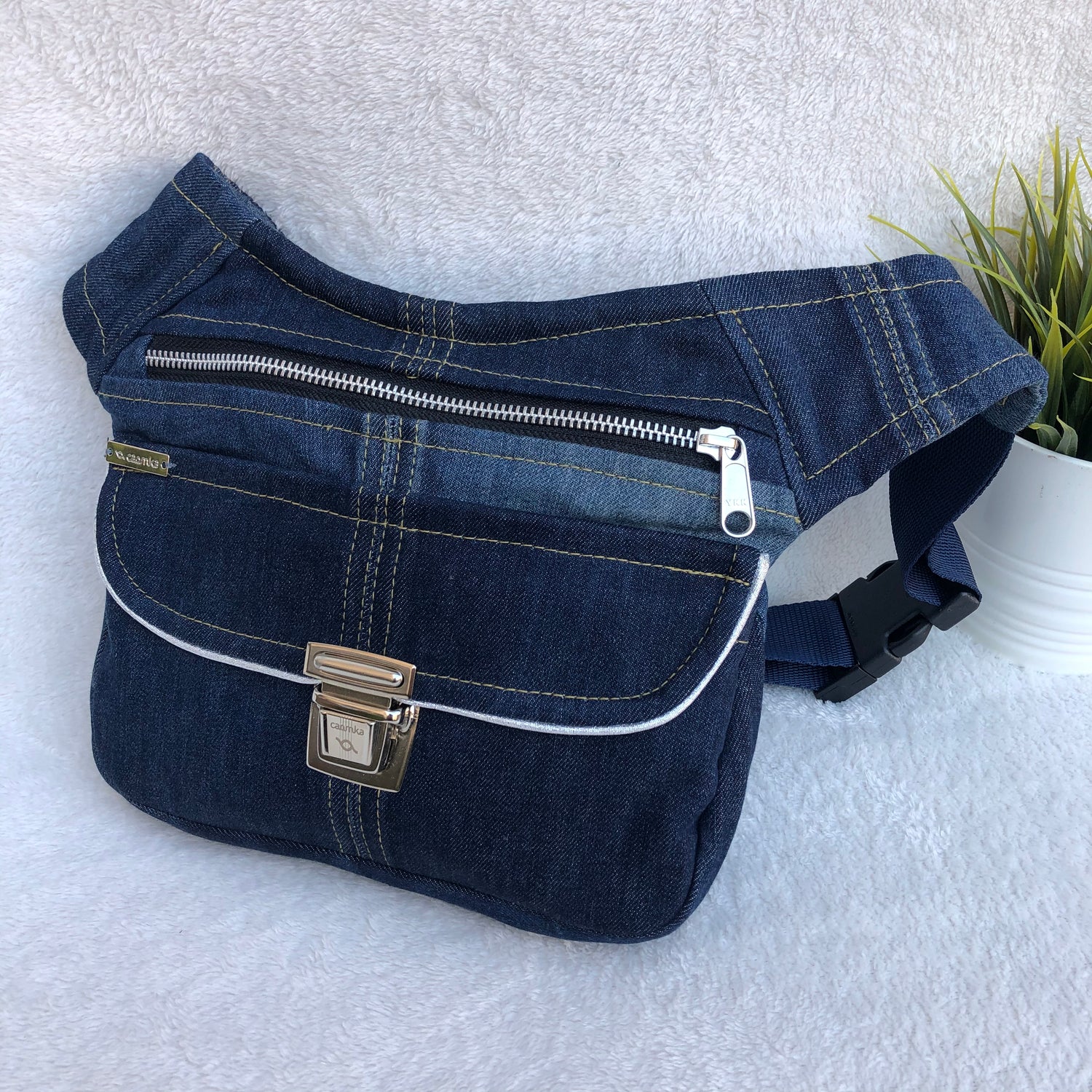 Bolso de Cadera multifunción (Riñonera - Bolso - Bandolera) en tela vaquera reciclada y resistente.