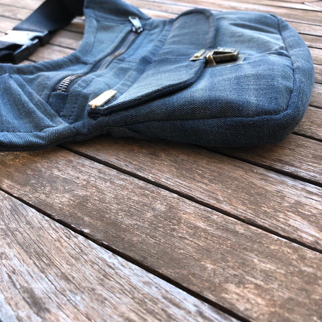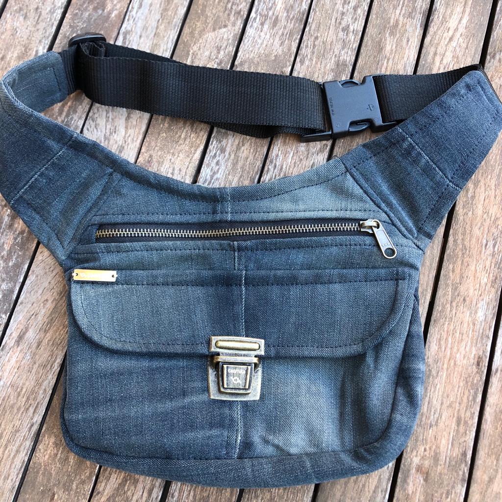 Bolso de Cadera multifunción (Riñonera - Bolso - Bandolera) en tela vaquera reciclada y resistente.