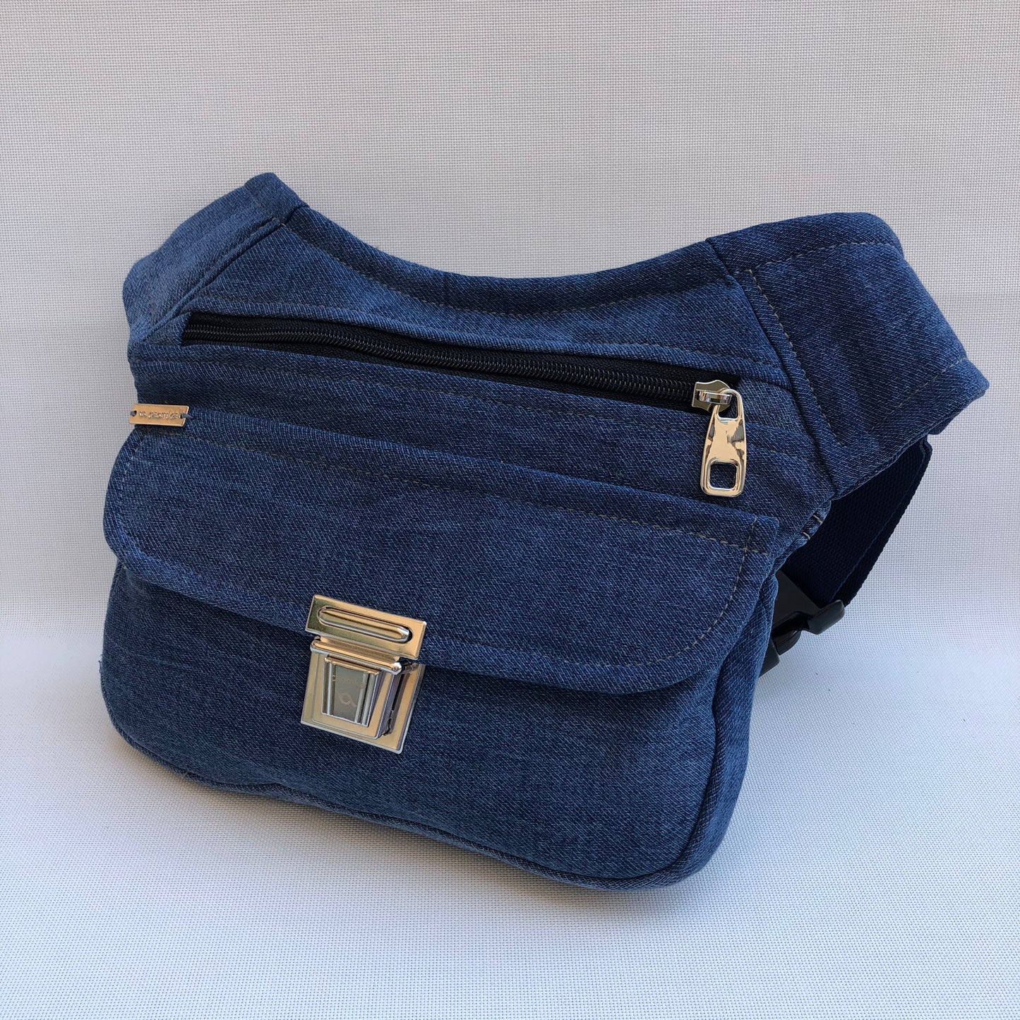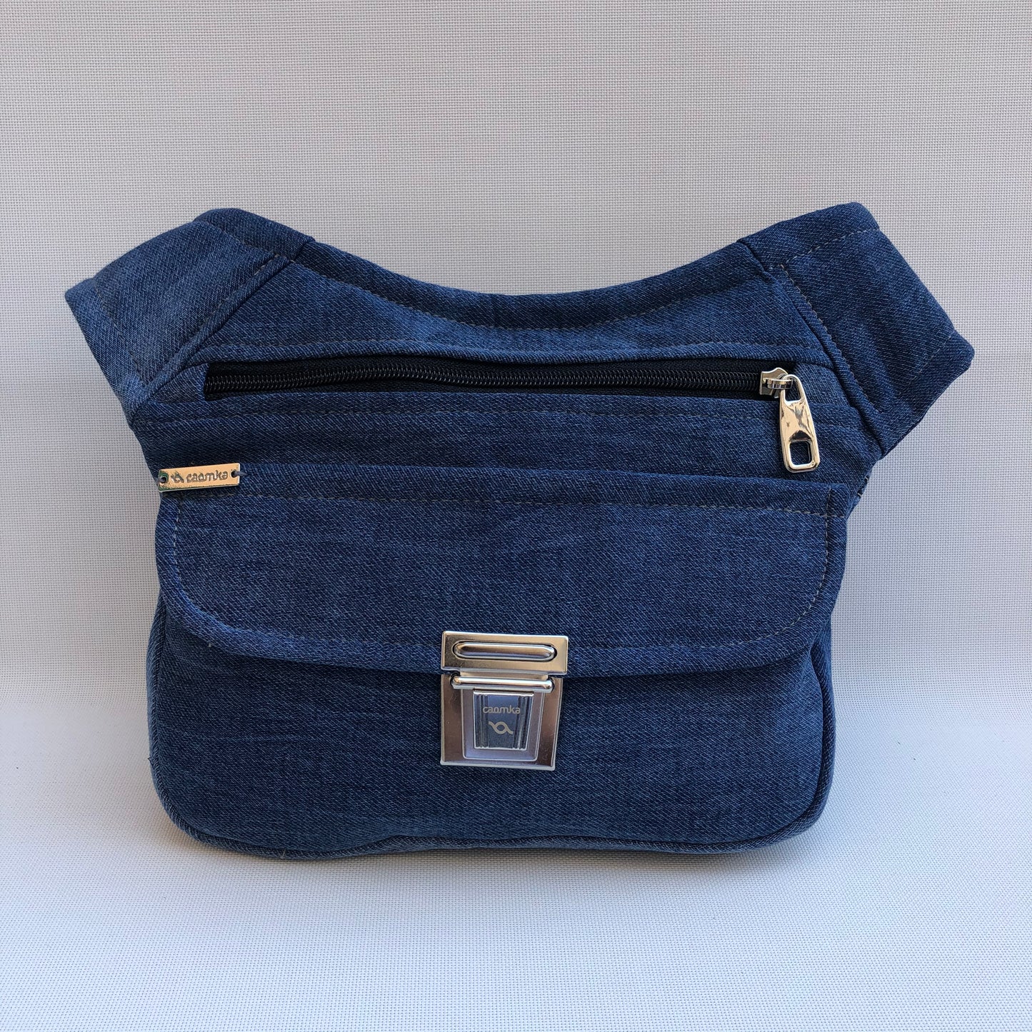 Bolso de Cadera multifunción (Riñonera - Bolso - Bandolera) en tela vaquera reciclada y resistente.