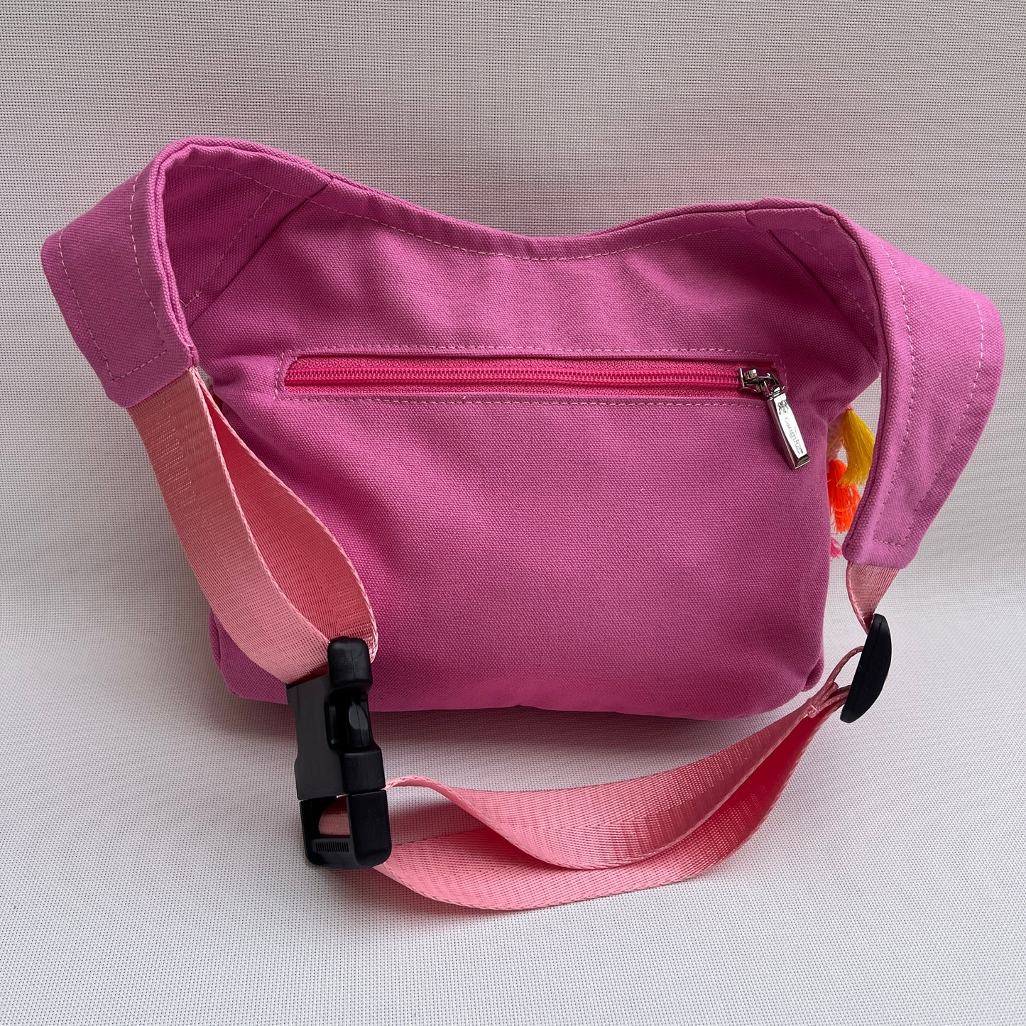 Cinta de ajuste regulable de nylon en color rosa a juego, con cierre negro de 4cm.