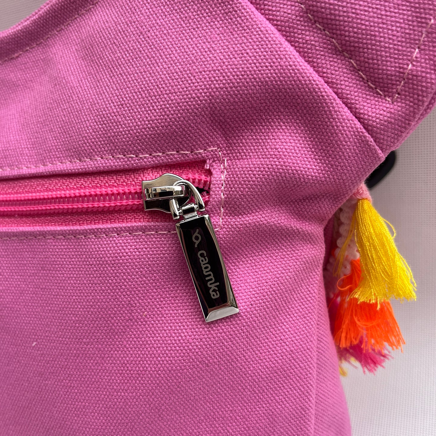 Cremallera original en color rosa a juego con tirador en color Plata