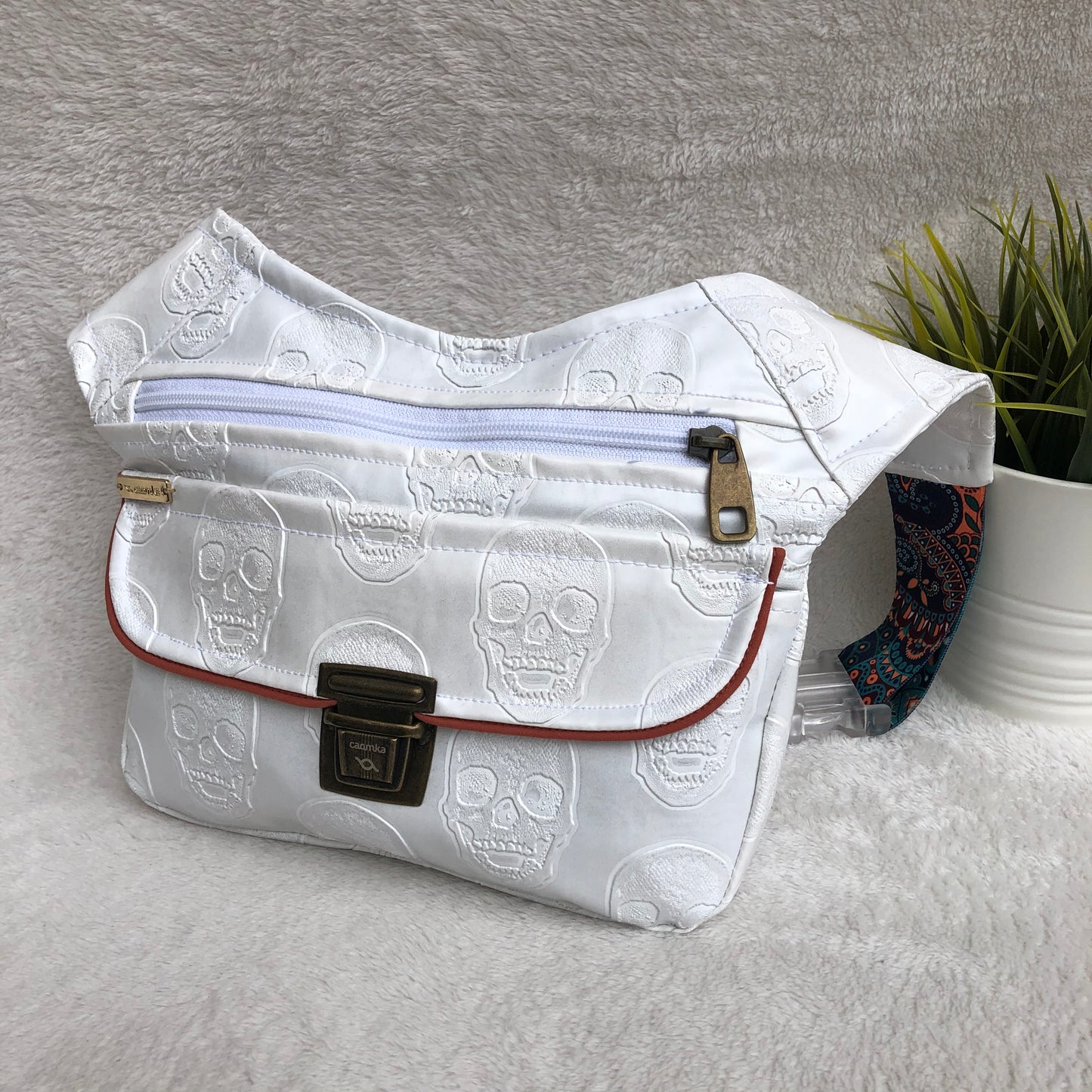 Riñonera de diseño: "Special White Skulls & Old Gold"